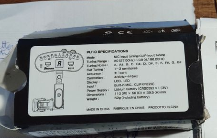 Ibanez PU10 afinador de pinza, se recomienda cambiar la pila