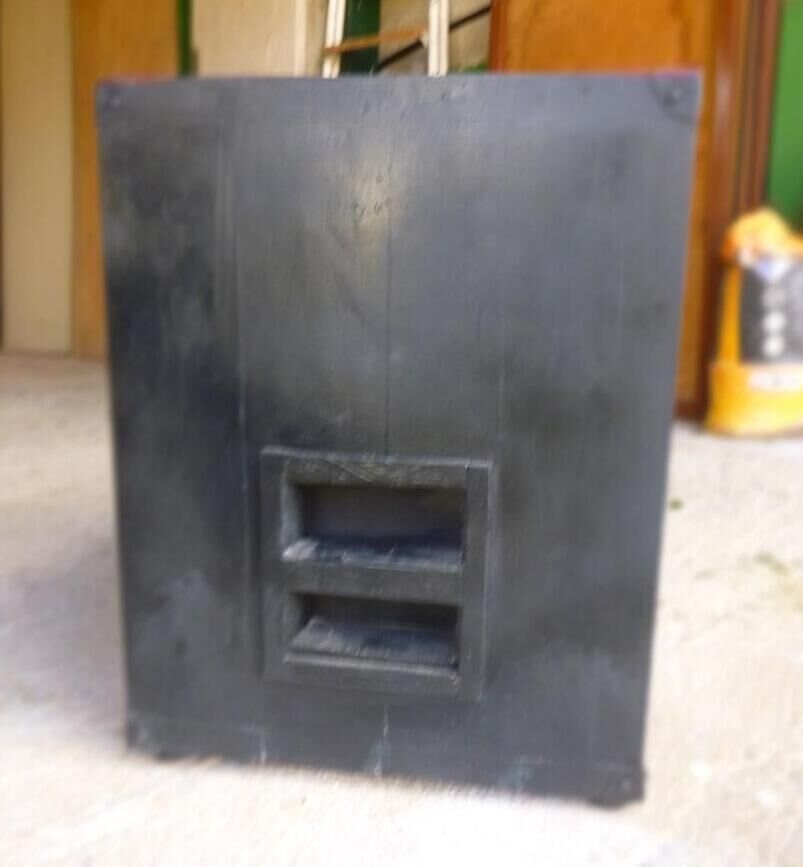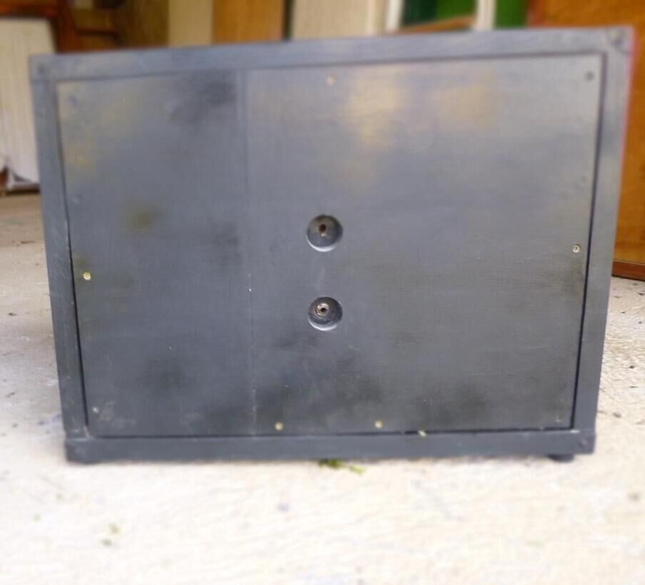 Vendo caja de guitarra casera equipada con 2 altavoces Fenton de 250 vatios cada uno. Dimensiones: L 58 / A 45 / P 38.