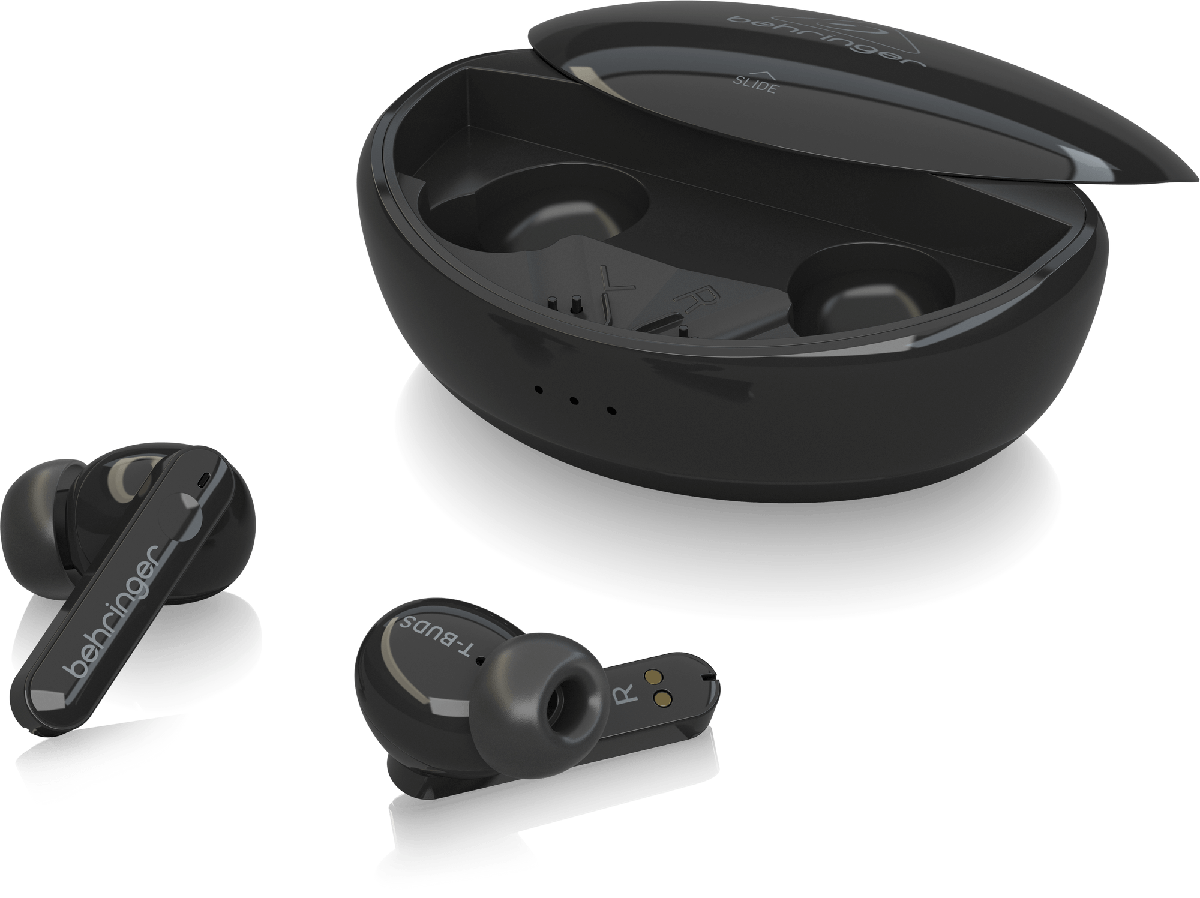 Entonces, el cable de tus auriculares se volvió a quedar enganchado en la silla del comedor y ahora te encuentras navegando por el sitio web buscando unos sucesores inalámbricos y cómodos. ¡No busques más allá de los T-Buds Bluetooth de Behringer! Sin restricciones de cables, te encantará la libertad inalámbrica de 33 pies de los True Buds. Estos auriculares ligeros y discretos ofrecen un sonido increíblemente claro, desde graves de alta definición hasta agudos ultra limpios. Disfrutarás de cuatro horas de reproducción de música con una sola carga, más 12 horas adicionales con el estuche de carga compacto. Y hacer llamadas es fácil gracias al micrófono integrado y los controles táctiles multifunción. Elige entre dos modos de reducción de ruido activo: el modo ANC ON eliminará los ruidos ambientales, mientras que el modo de Transparencia permitirá que algunos ruidos pasen para que puedas mantenerte consciente de tu entorno. En general, estos auriculares cómodos, ligeros y resistentes a salpicaduras (IPX4) son compañeros fantásticos ya sea que estés tocando, escuchando música o entrenando en el gimnasio.