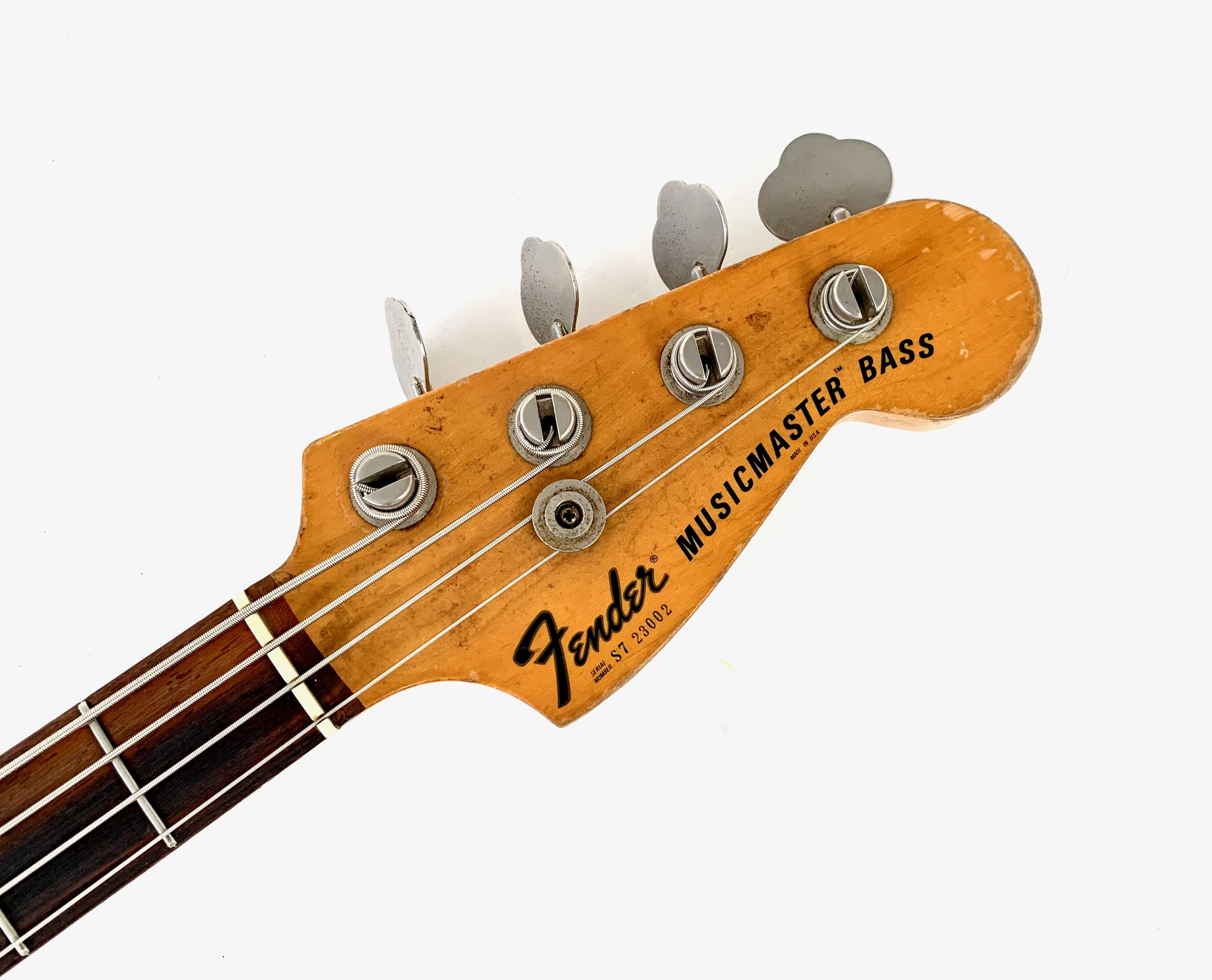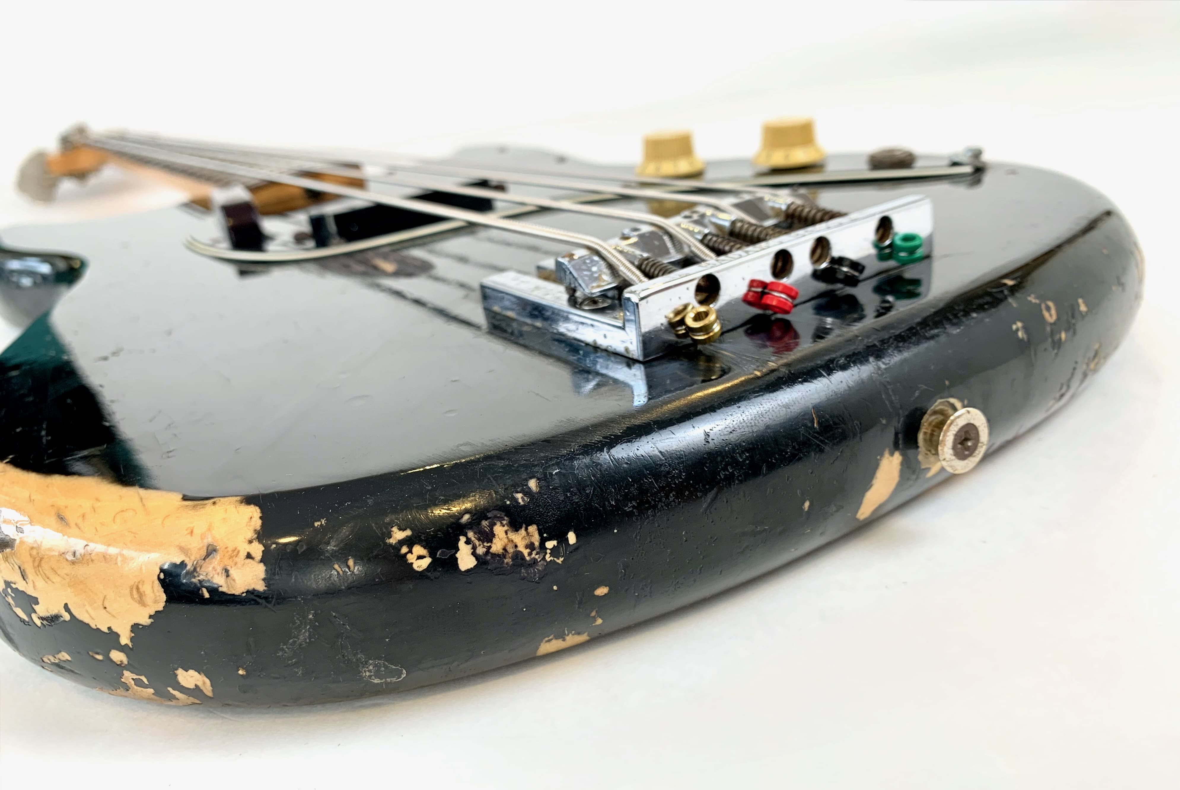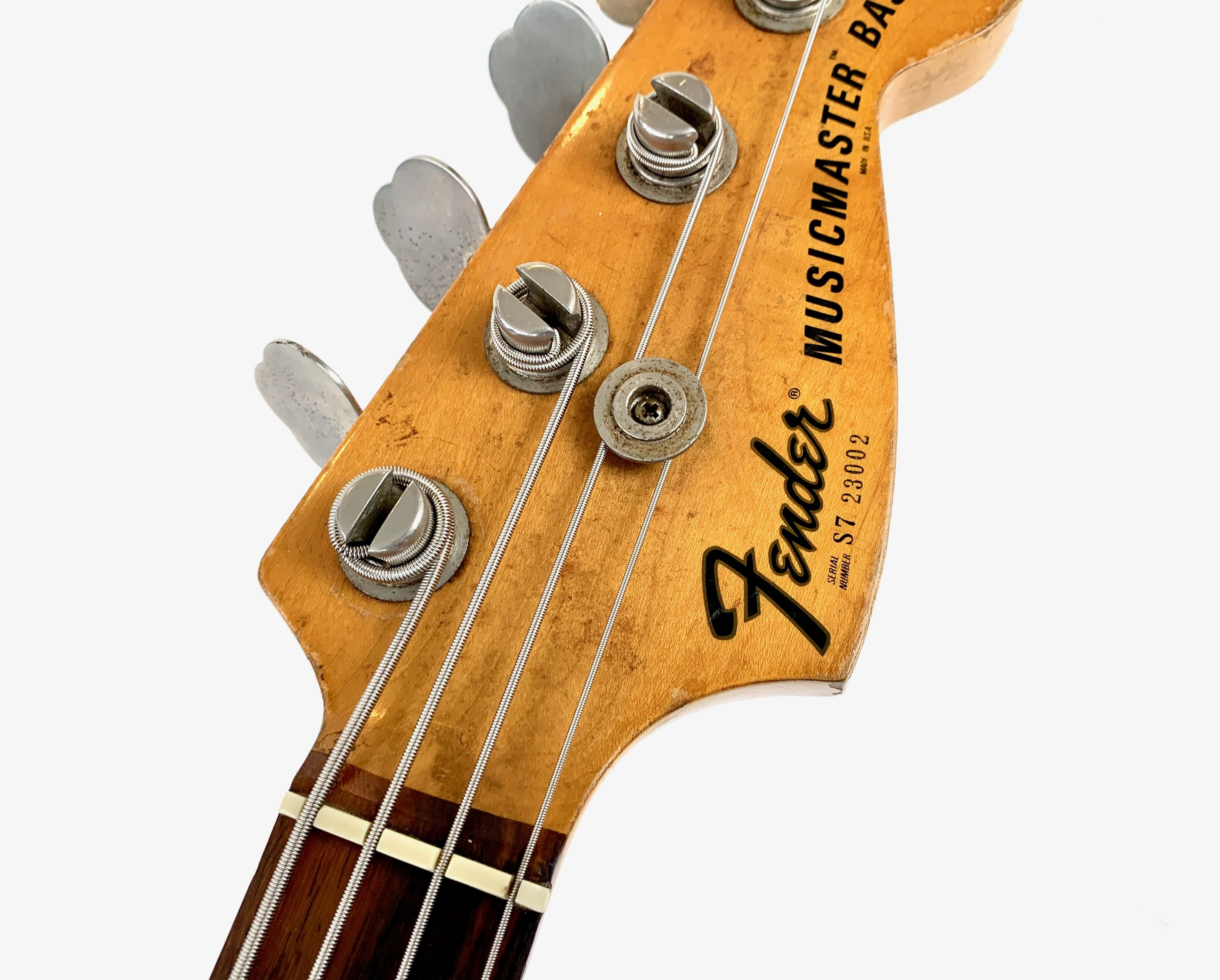 Lanzado en 1971, el Fender Musicmaster Bass era una alternativa más asequible al Fender Mustang Bass. Con su escala corta de 30 pulgadas, es apreciado por los guitarristas y los músicos con manos más pequeñas. El mástil de arce cuenta con un diapasón de palisandro con un radio de 7.25". Este ejemplar claramente ha visto algo de acción: los botones de control han sido reemplazados, al igual que el puente con un Badass Bass Bridge, la protección del golpeador está agrietada y también hay retoques de pintura en la parte superior. Con un peso de 3.57 kg en nuestra balanza, ¡el peso sigue siendo muy razonable para este gran instrumento! Más fotos y detalles disponibles bajo solicitud. Envío disponible a nivel mundial.