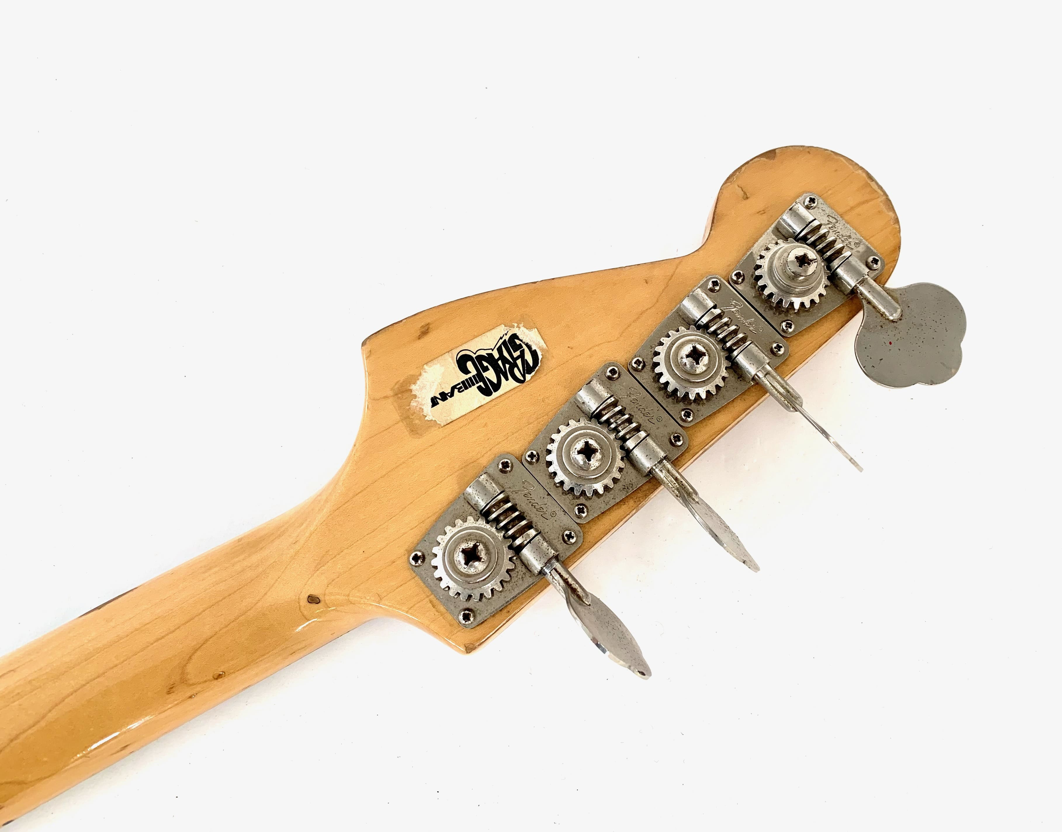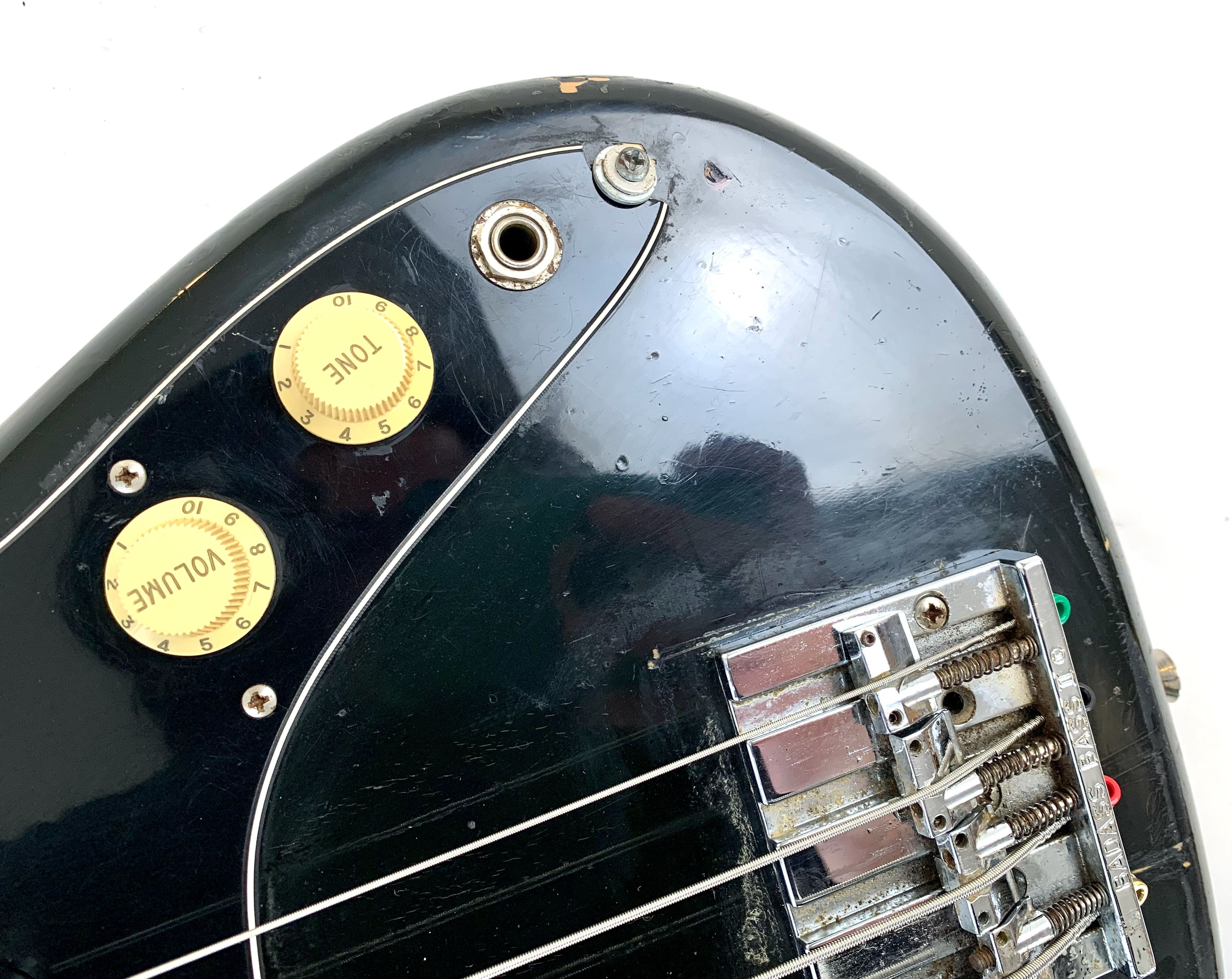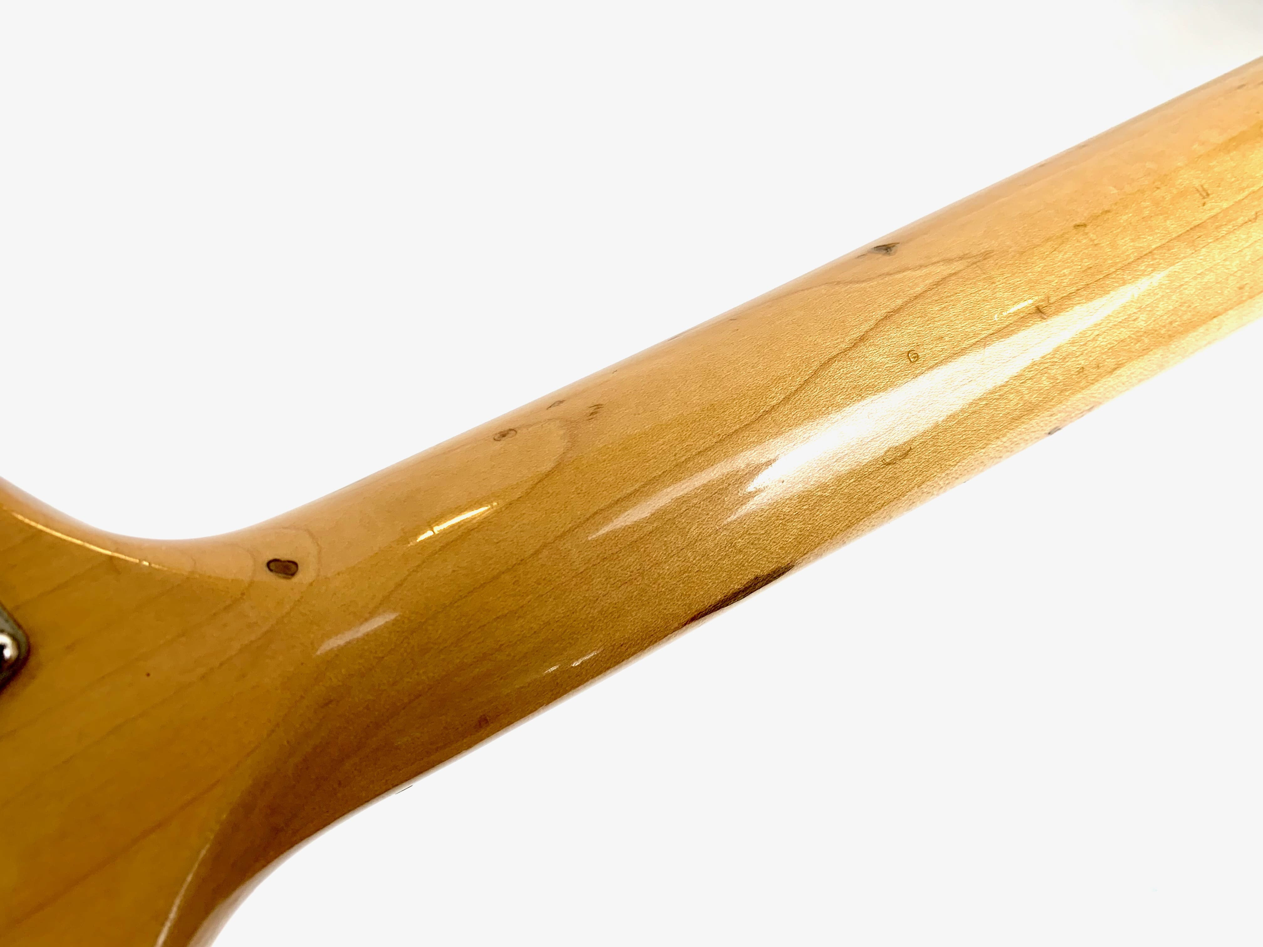Lanzado en 1971, el Fender Musicmaster Bass era una alternativa más asequible al Fender Mustang Bass. Con su escala corta de 30 pulgadas, es apreciado por los guitarristas y los músicos con manos más pequeñas. El mástil de arce cuenta con un diapasón de palisandro con un radio de 7.25". Este ejemplar claramente ha visto algo de acción: los botones de control han sido reemplazados, al igual que el puente con un Badass Bass Bridge, la protección del golpeador está agrietada y también hay retoques de pintura en la parte superior. Con un peso de 3.57 kg en nuestra balanza, ¡el peso sigue siendo muy razonable para este gran instrumento! Más fotos y detalles disponibles bajo solicitud. Envío disponible a nivel mundial.