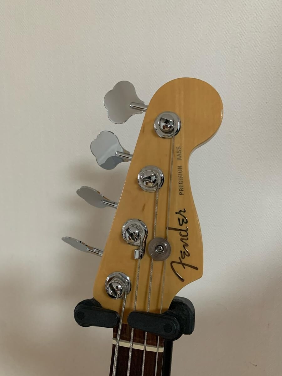 Se vende con un estuche rígido Fender un poco abombado, pero cumple su función, y una correa de cuero equipada con straplock.