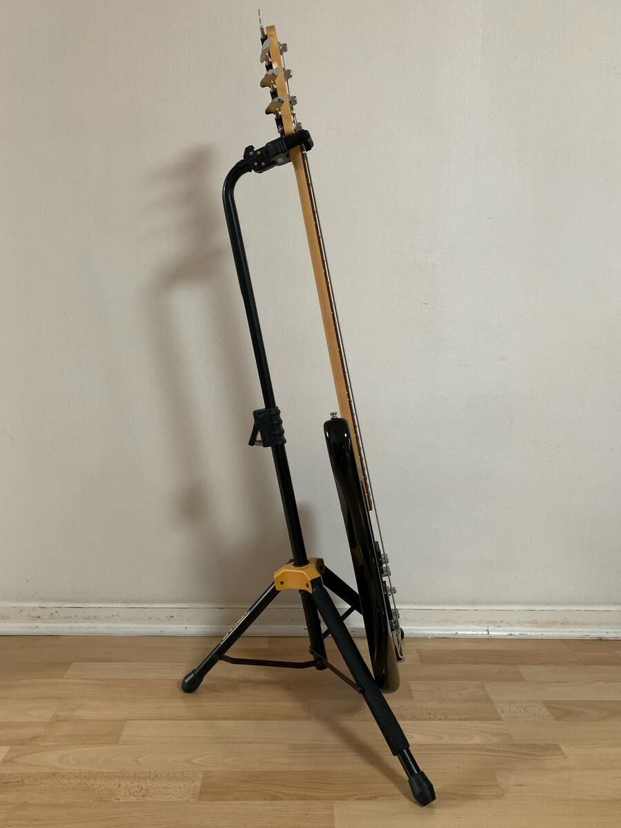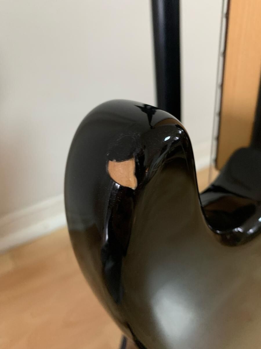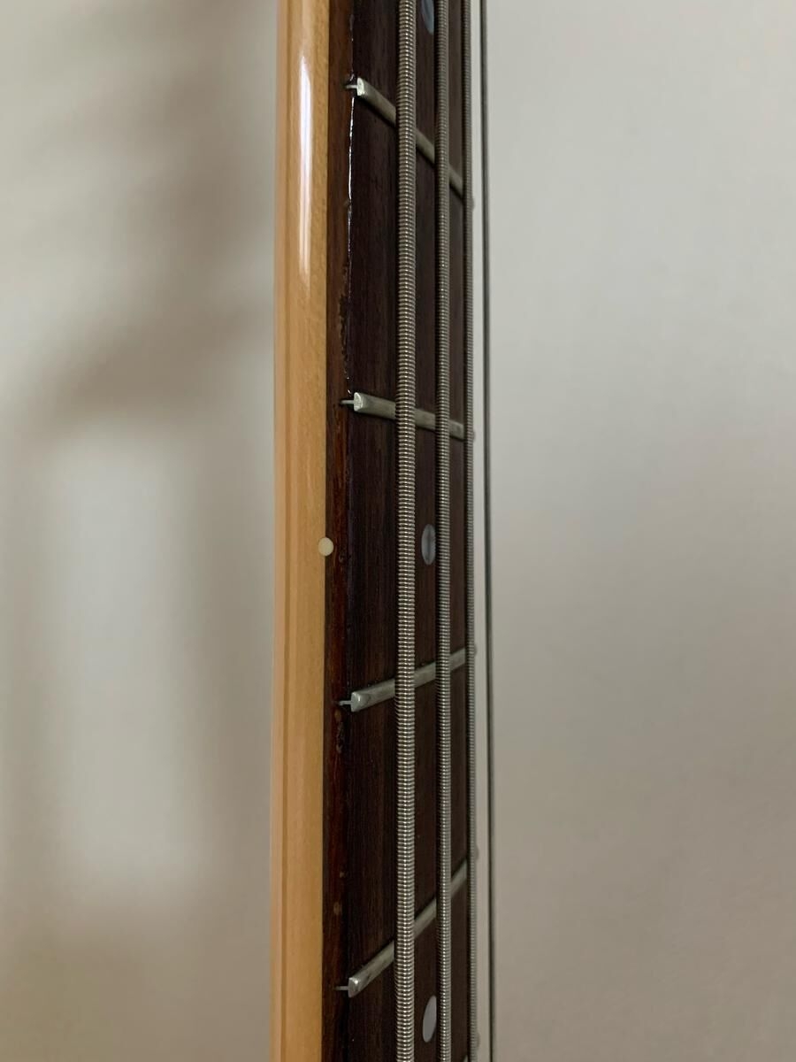 En términos del cuerpo, sí tiene algunas marcas superficiales en la parte trasera, un desconchado de barniz debajo del cuerno inferior del cuerpo y algunos pequeños golpes aquí y allá, pero nada grave, ¡este bajo es de 2005 después de todo! Y no representa ninguna molestia, ha sido utilizado en escenarios, home studios, estudios y medios digitales.