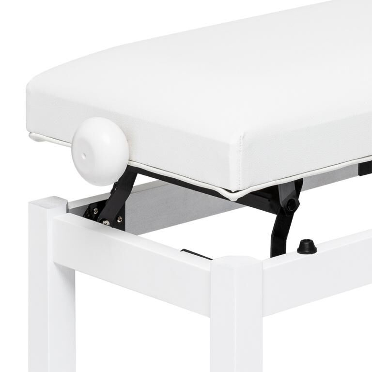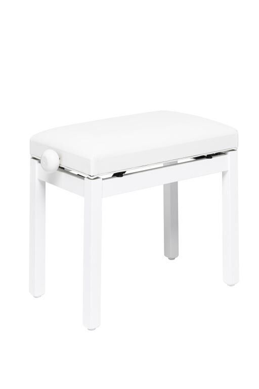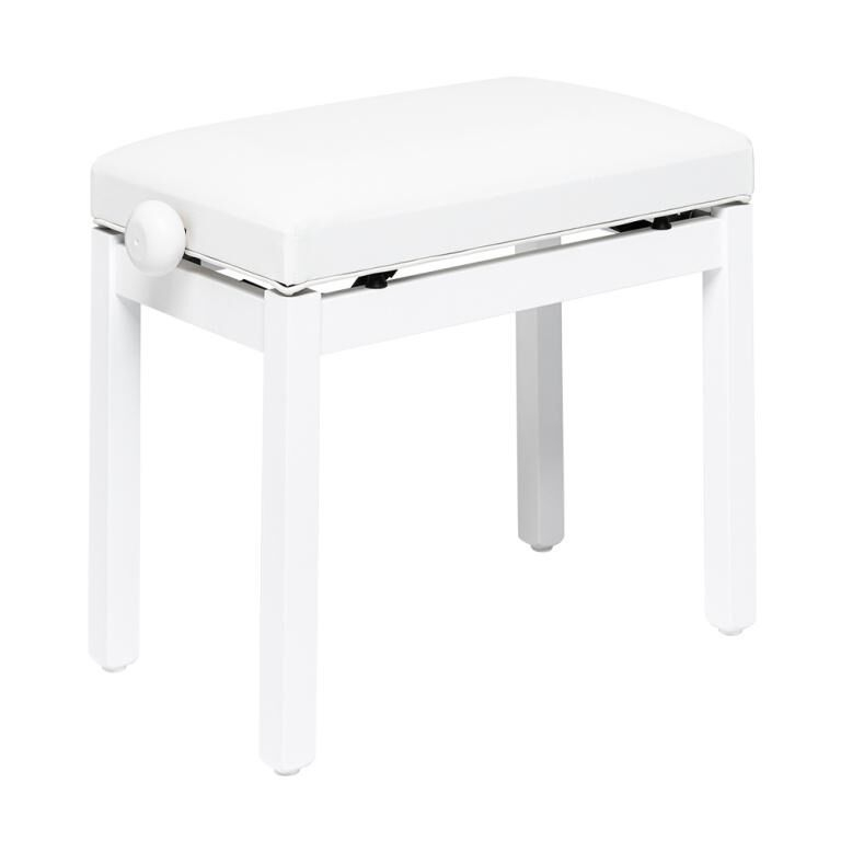 Banqueta de piano, color blanco mate, con tapizado de skai blanco