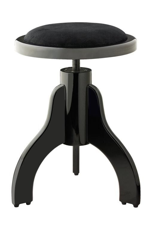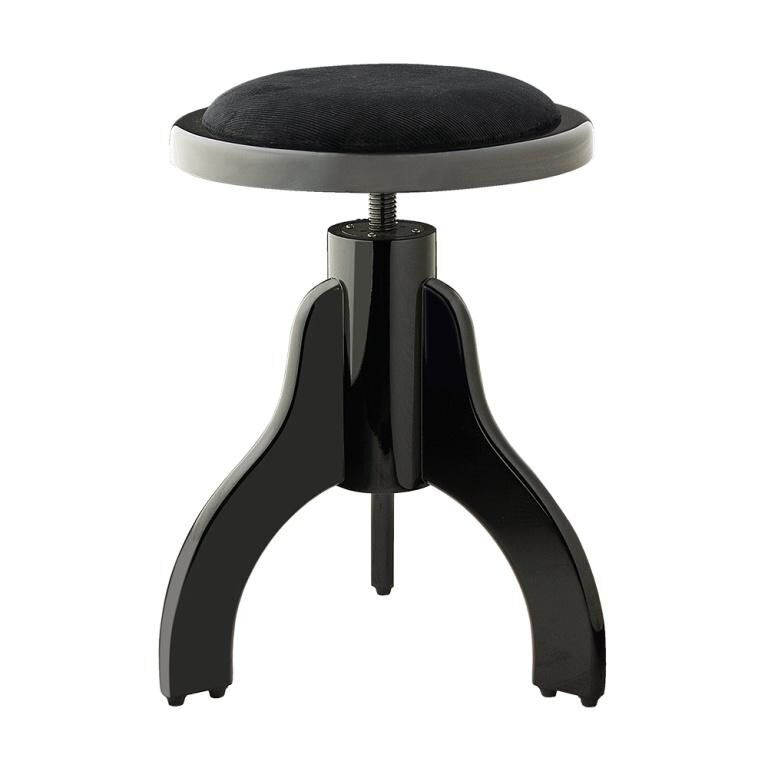 Taburete negro mate para piano con cojín de terciopelo negro.