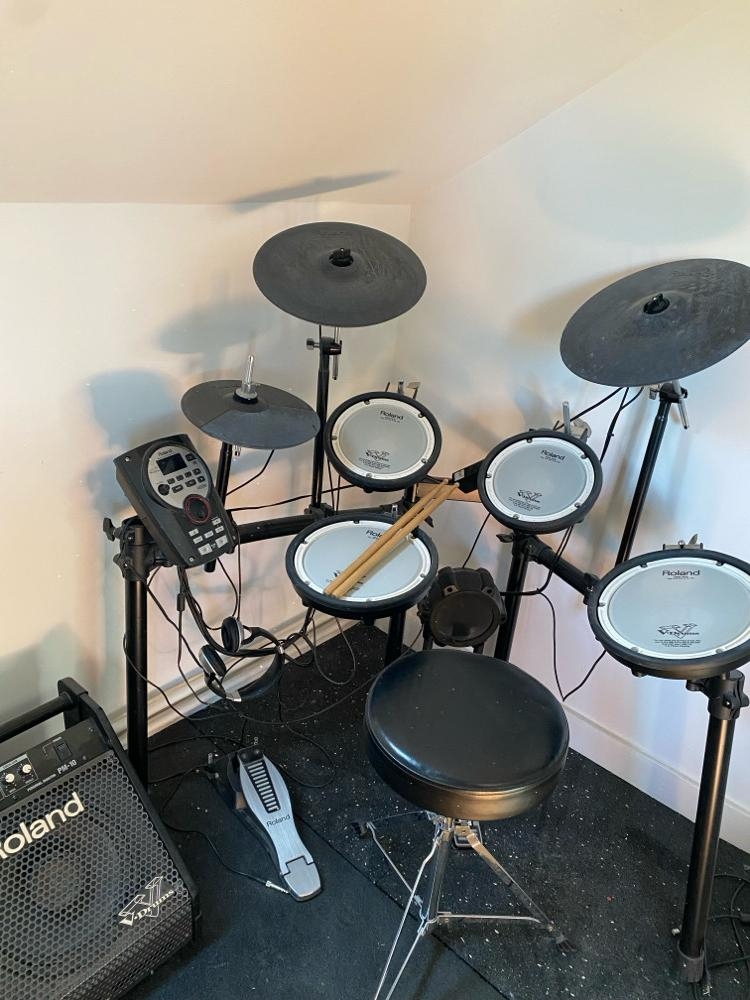 Hola, estoy vendiendo mi batería Roland TD-11 KV en excelente estado, incluyendo su amplificador PM10. El taburete y la alfombrilla antivibraciones están incluidos.