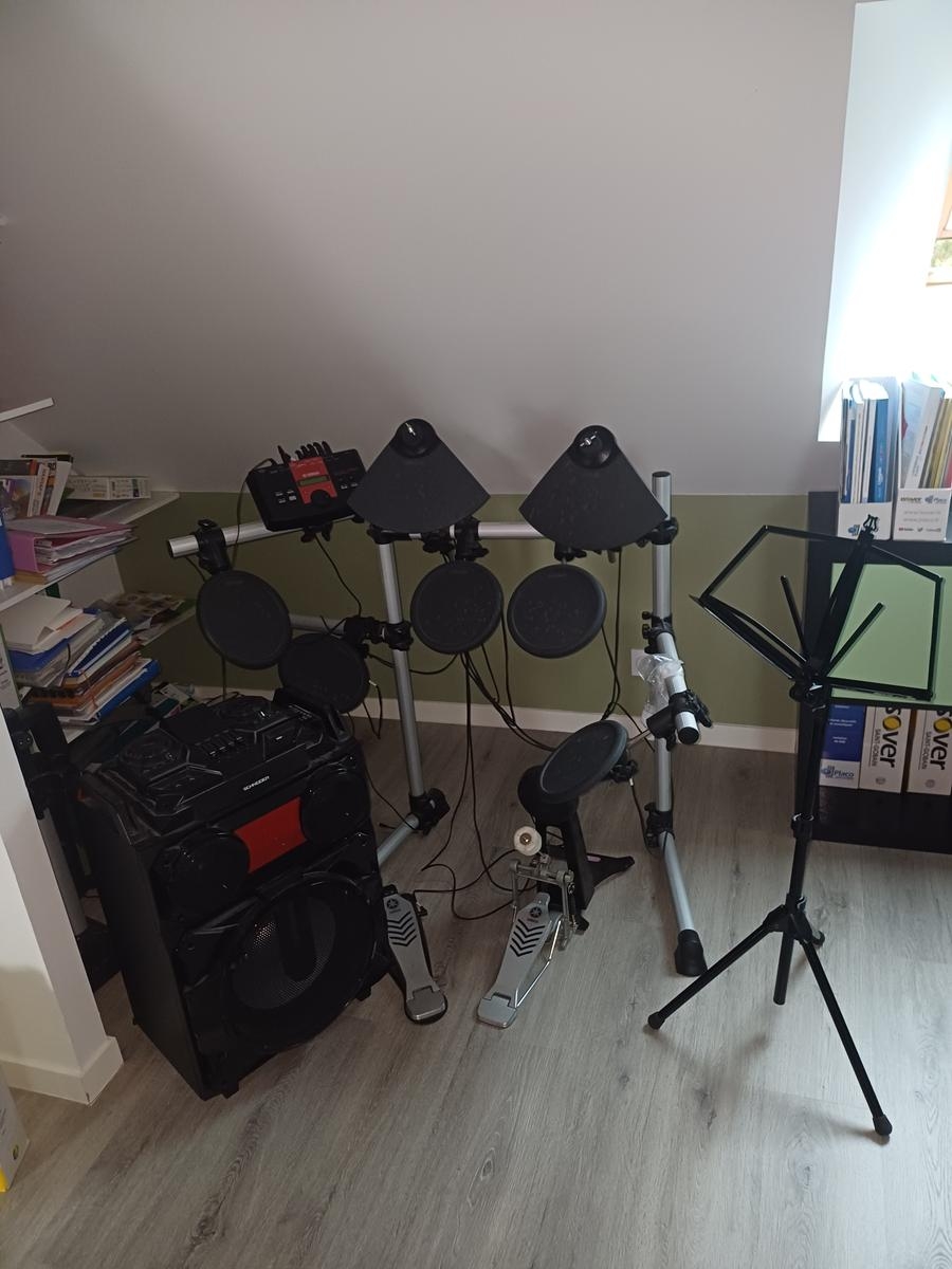 Batería electrónica YAMAHA DTXPLORER completa con altavoz Schneider Bluetooth, en muy buen estado, comprada para mi hijo que solo la ha utilizado durante un año.