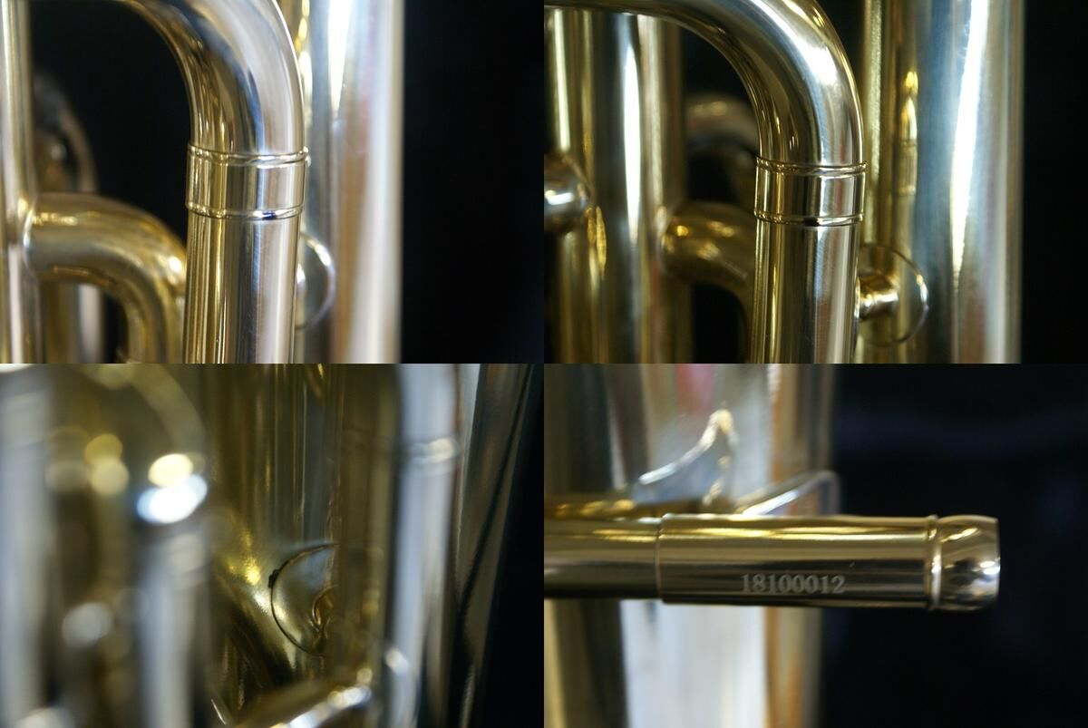• Eufonio en si bemol, serie 300. Válvulas: 4 (3 válvulas frontales + 1 válvula lateral). Perforación: 14.5 mm. Diámetro de la campana: 280 mm. Acabado lacado. Se entrega con un estuche negro de nylon y una boquilla.