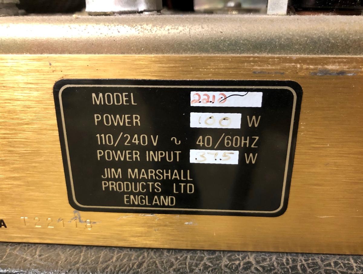 Marshall JCM 800 Lead Series Modelo 2210 Cabezal Master Volume de 100 vatios con Reverb, año 1985, color negro. JCM800 de dos canales, en muy buen estado.
