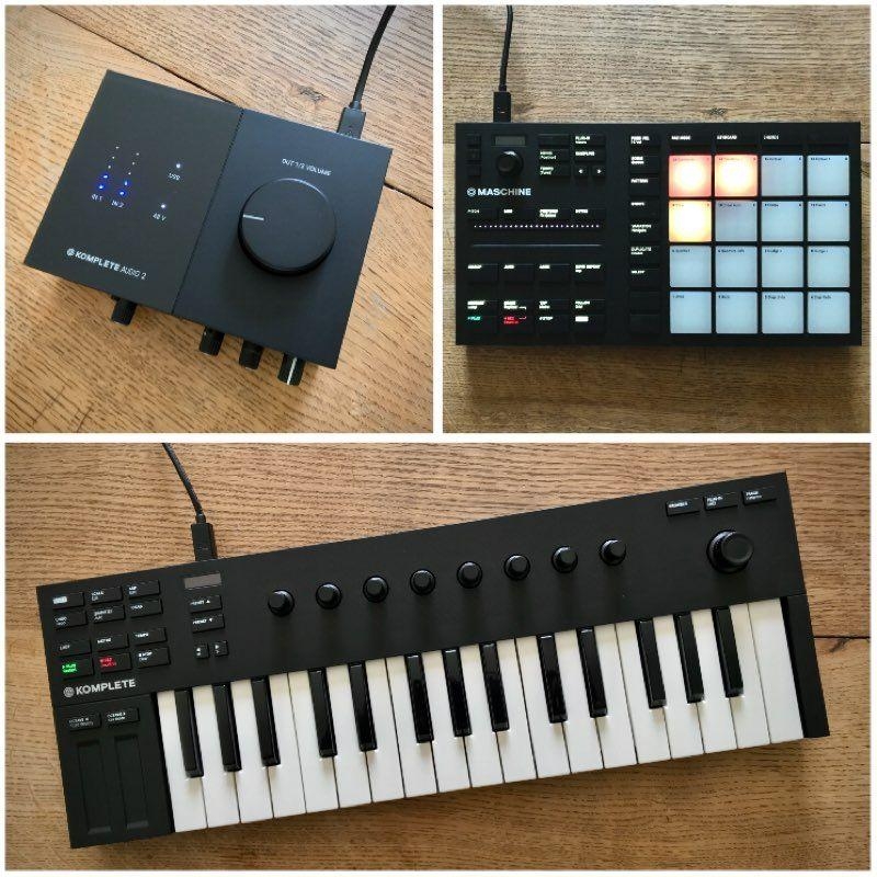 Vendo un conjunto perfecto para comenzar un estudio casero, compuesto por una interfaz de audio Komplete Audio 2, un teclado Komplete Kontrol M32 y una Maschine Mikro MK3. Me deshago de ellos porque ya no tengo tiempo para usarlos.