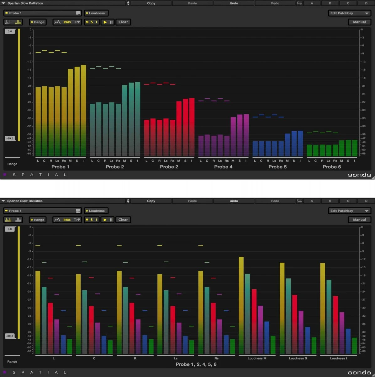 DSpatial Sonda es un medidor de nivel multipunto. Proporciona lecturas de picos, RMS y sonoridad, y permite comparar varios puntos dentro de una mezcla compleja desde una única interfaz.