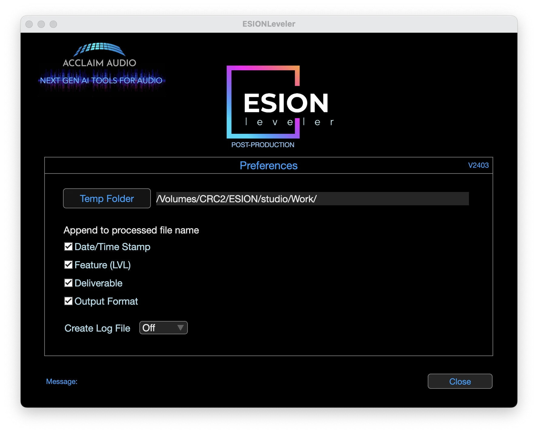 Acclaim Audio ESION Studio Extension for Media Composer