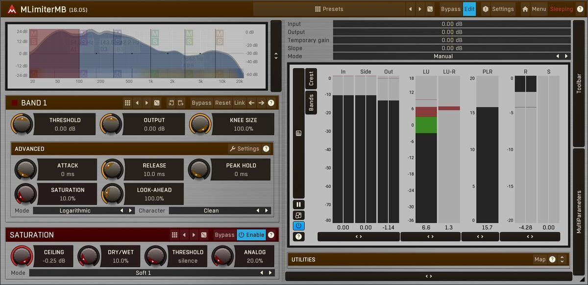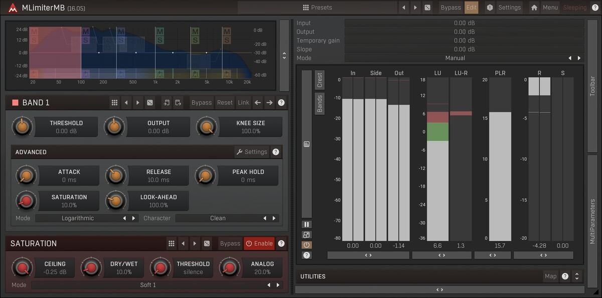 Agrega esto a una pista, aumenta el drive y ¡haz que tu música suene mejor! ¡Así es, esto es MLimiterMB, el mejor limitador y maximizador multibanda!