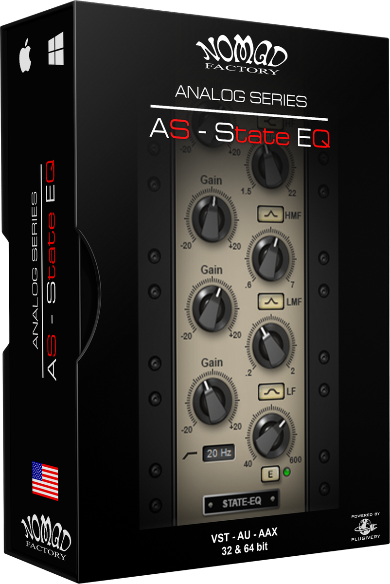 AS - State EQ, inspirado en una famosa consola británica clásica de tres letras, te brinda el sonido característico de los ecualizadores de la serie E y G al alcance de tus dedos.