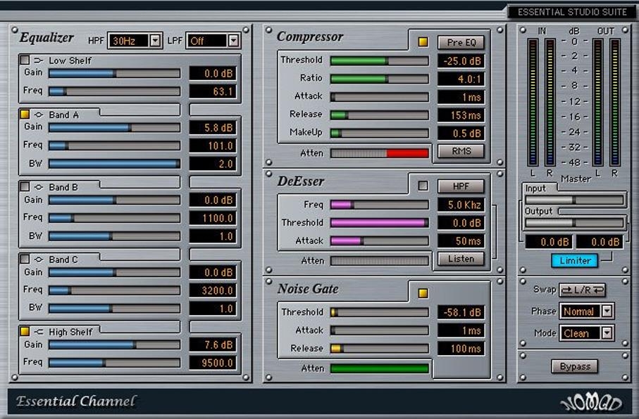 • DeEsser (con filtro paso alto o paso banda seleccionable),