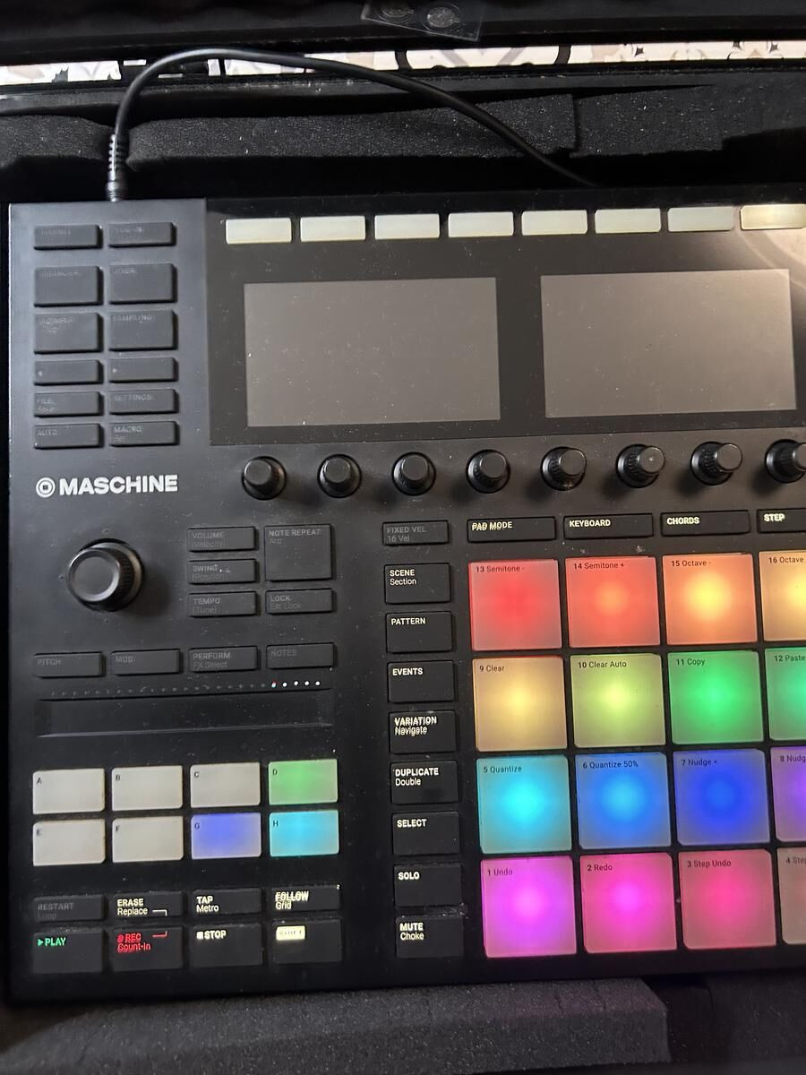 El Maschine MK3 de Native Instruments es una solución completa para la producción musical y presentaciones en vivo. Con sus pads ultra sensibles, sus dos pantallas a color de alta resolución y su interfaz de audio integrada, se posiciona como uno de los controladores de producción más potentes del mercado. Este modelo se vende con su estuche rígido de transporte, ideal para giras o estudios móviles.