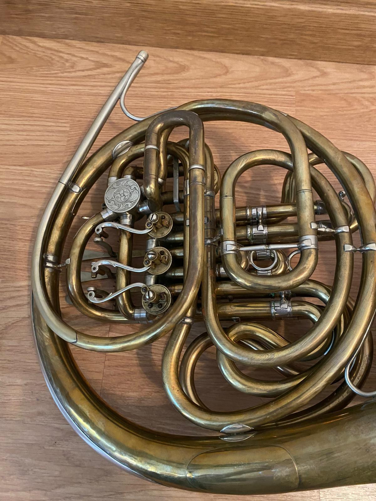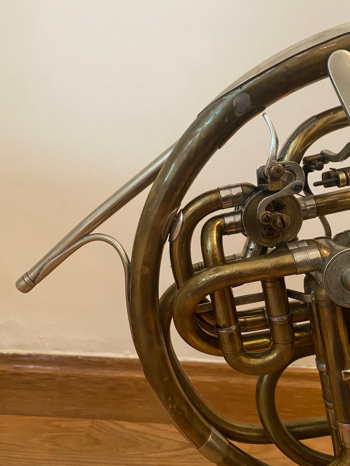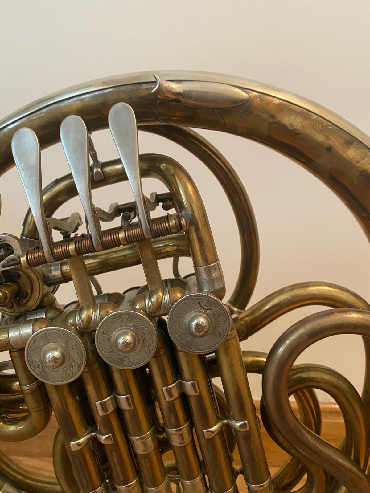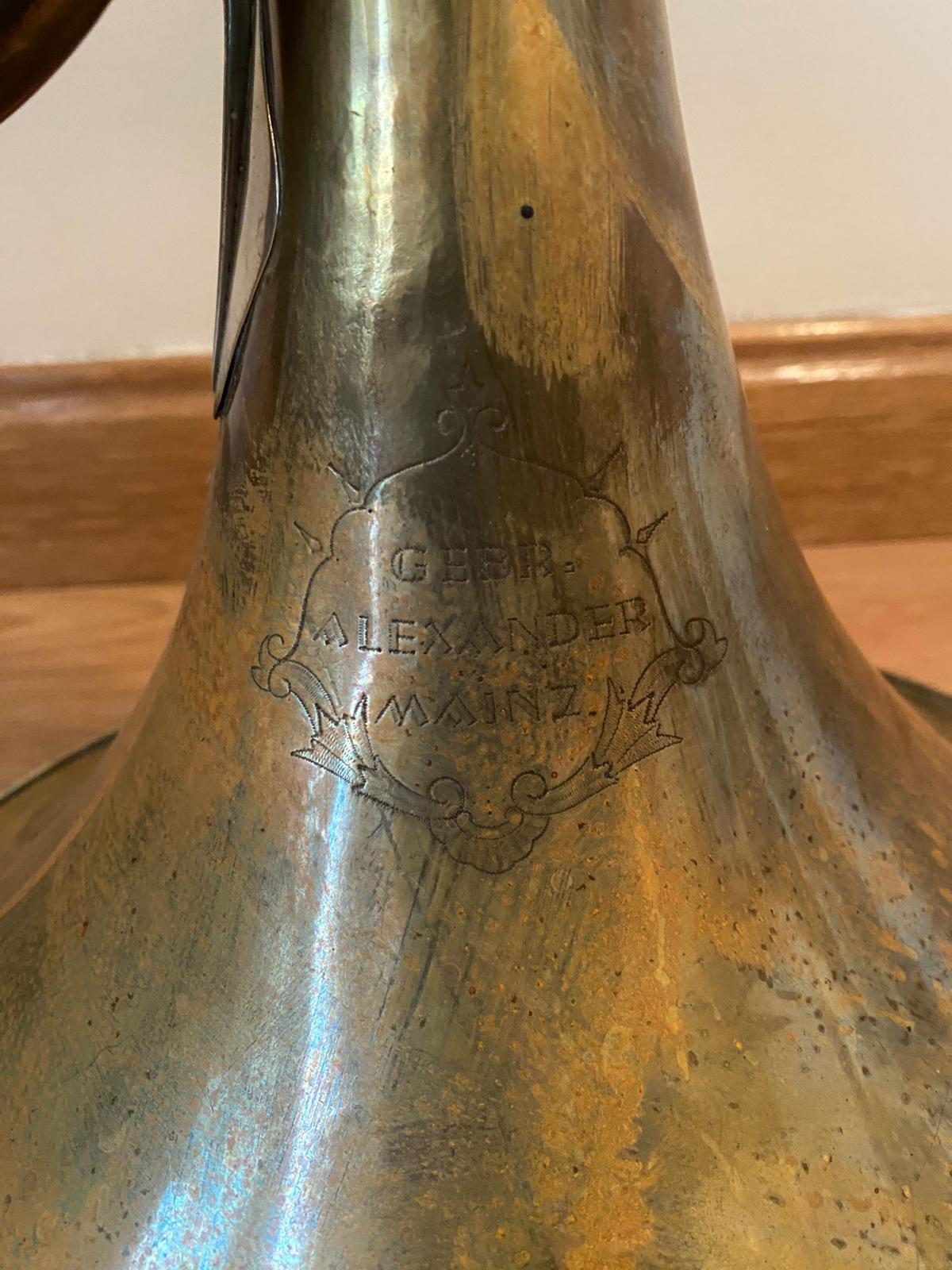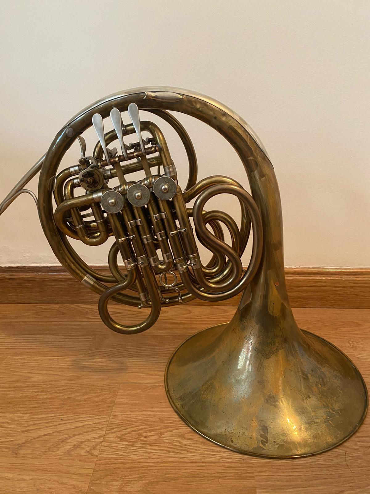 se vende trompa doble Alexander 103, en buen estado. Tiene sus años pero funciona bien. Aproximadamente de los años 30-40. Tiene un parche en la zona inferior. El precio es negociable