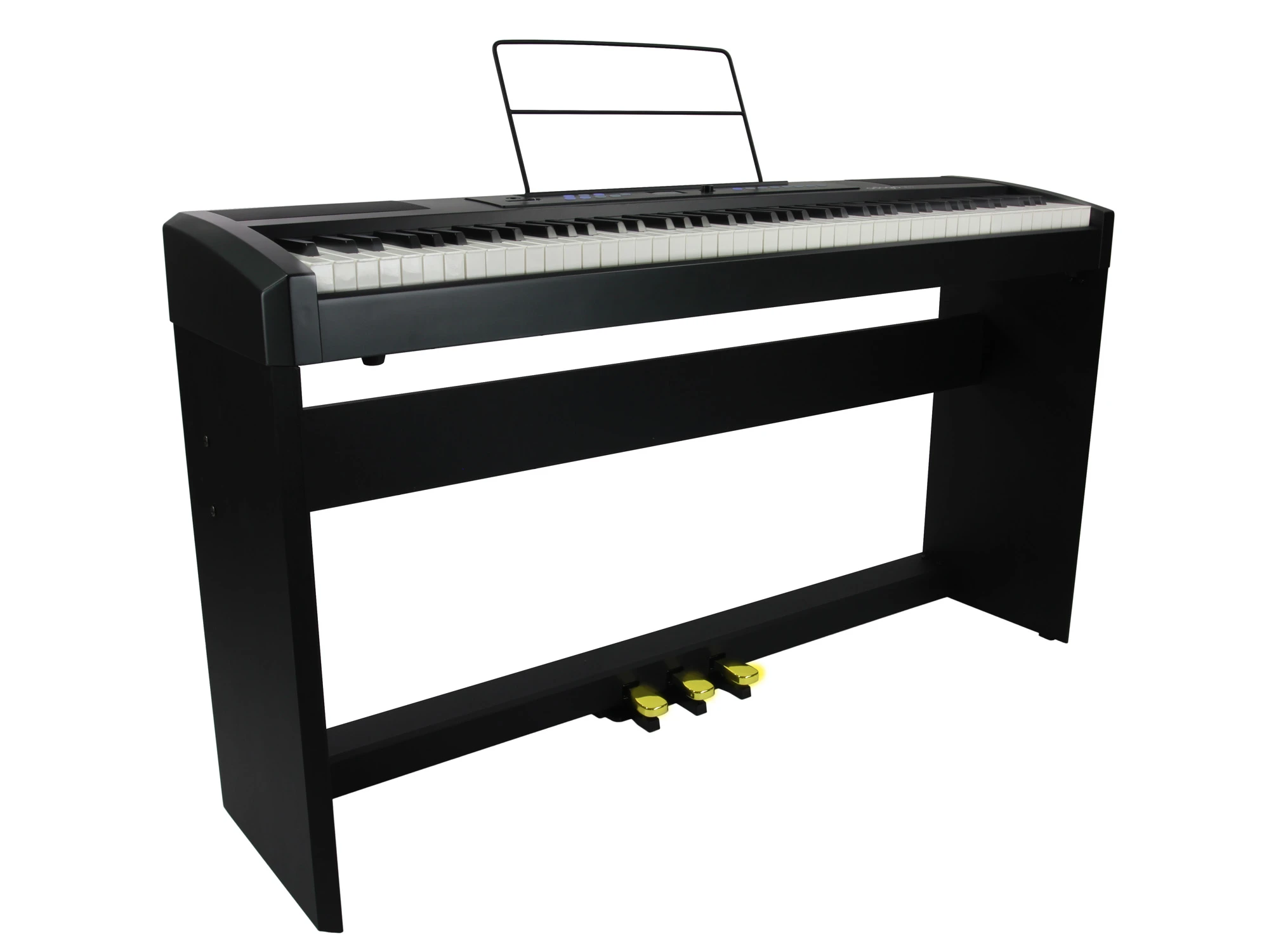 Fácil de transportar con sus dimensiones de 1330 x 330 x 120 mm y un peso de 17.1 kg, se suministra con un pedal de sustain y un atril desmontable. También está disponible un soporte opcional para un uso aún más cómodo.