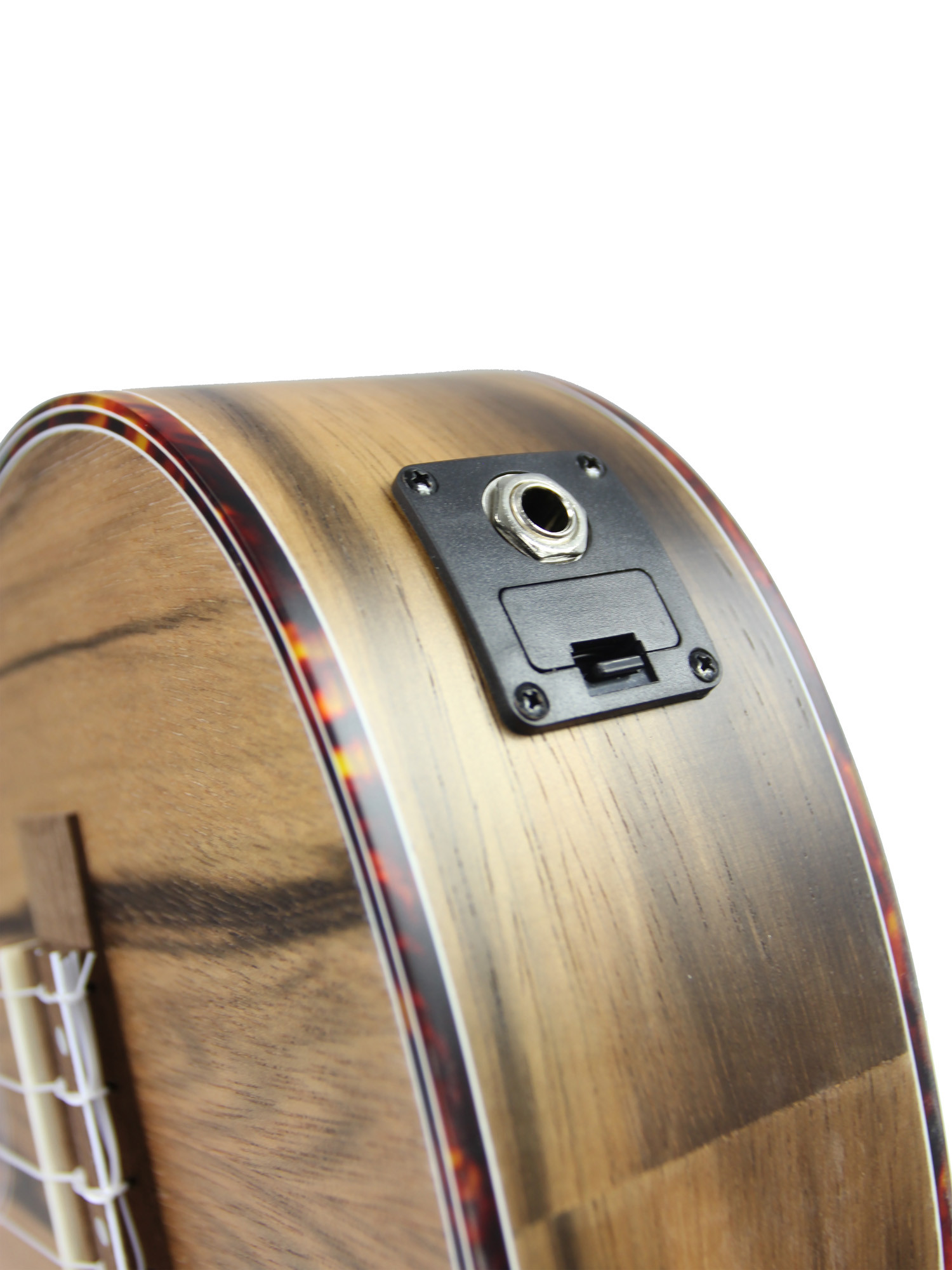 Instrumento de cuerda en formato concierto, este modelo cuenta con tapa, fondo y aros de dao. Está equipado con un preamplificador EQ-7B y se entrega con una funda, en un acabado natural.