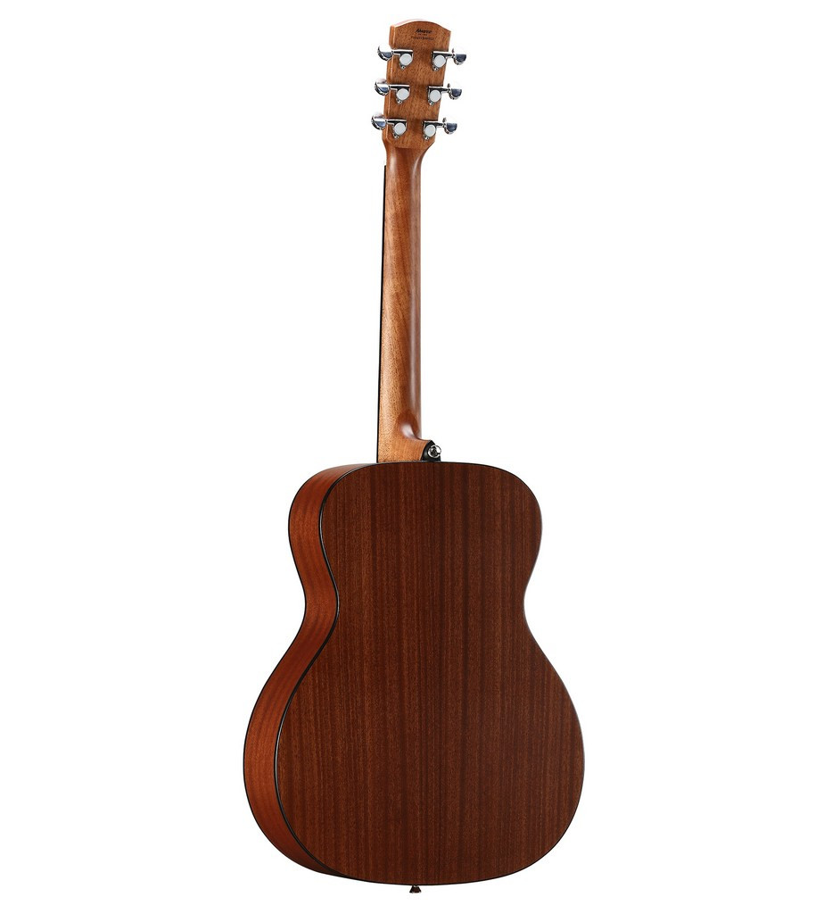 Su tapa maciza de abeto Sitka A+, su fondo y aros de caoba, sus cejuelas de hueso y sus clavijeros cromados en baño de aceite son elementos que demuestran una fabricación cuidada.