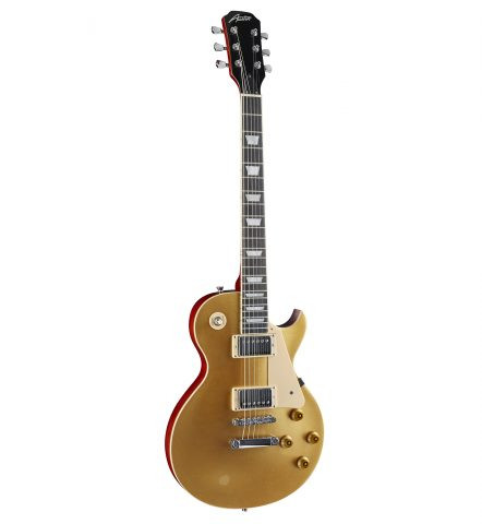 Esta guitarra eléctrica se distingue por un cuerpo arqueado de caoba y un mástil encolado de caoba, ofreciendo una construcción clásica y cuidada. Su diapasón Techwood con incrustaciones nacaradas aporta un acabado elegante, mientras que la cejuela de PPS, el puente Tune-O-Matic y las clavijas cromadas vintage completan un conjunto fiable y armonioso. Está equipada con 2 pastillas humbucker, 2 controles de tono, 2 controles de volumen y un selector de 3 posiciones, para una gama de ajustes adaptada a distintos estilos de interpretación. El binding de ABS en el cuerpo y el mástil refuerza su aspecto refinado, y las cuerdas Daddario junto con el acabado Gold Top añaden carácter.