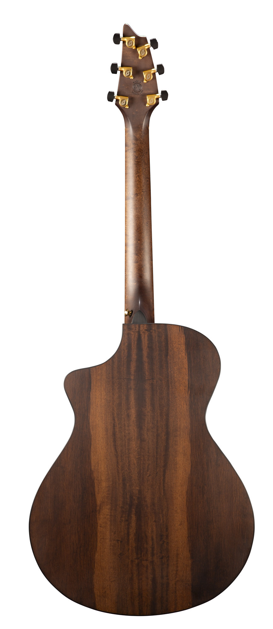Esta guitarra acústica-eléctrica ofrece una construcción cuidada con tapa de abeto Sitka macizo y fondo y aros de myrtlewood macizo. Está equipada con cutaway para facilitar el acceso a los agudos, mástil de arce duro, diapasón y puente de ébano, así como una cejuela de 44,5 mm. Las incrustaciones “offset dots”, el ribete negro, las cejuelas TUSQ y las clavijas Breedlove doradas satinadas completan el conjunto. Monta cuerdas D’Addario EXP 16, integra un sistema electroacústico LR Baggs EAS VTC y se entrega con un estuche Deluxe.