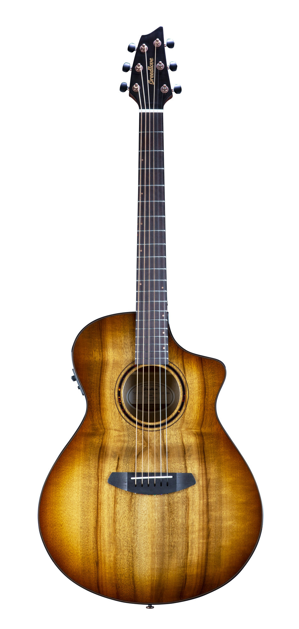 Ofrece una tapa maciza de myrtlewood, un fondo y unos aros a juego en myrtlewood, un mástil de caoba, un diapasón y un puente de ovangkol, así como electrónica Fishman Presys I. El conjunto se completa con cejuelas Tusq y clavijas Breedlove Premium Copper.