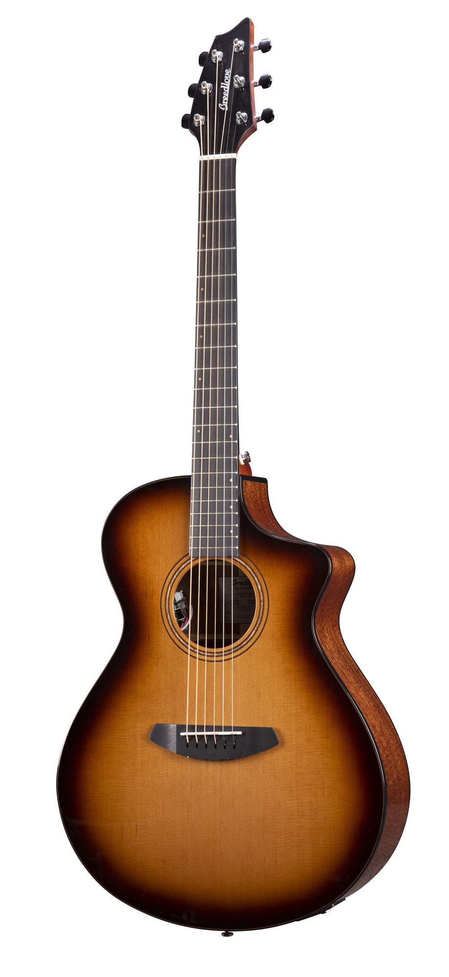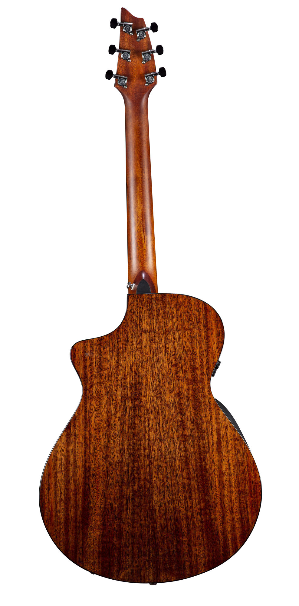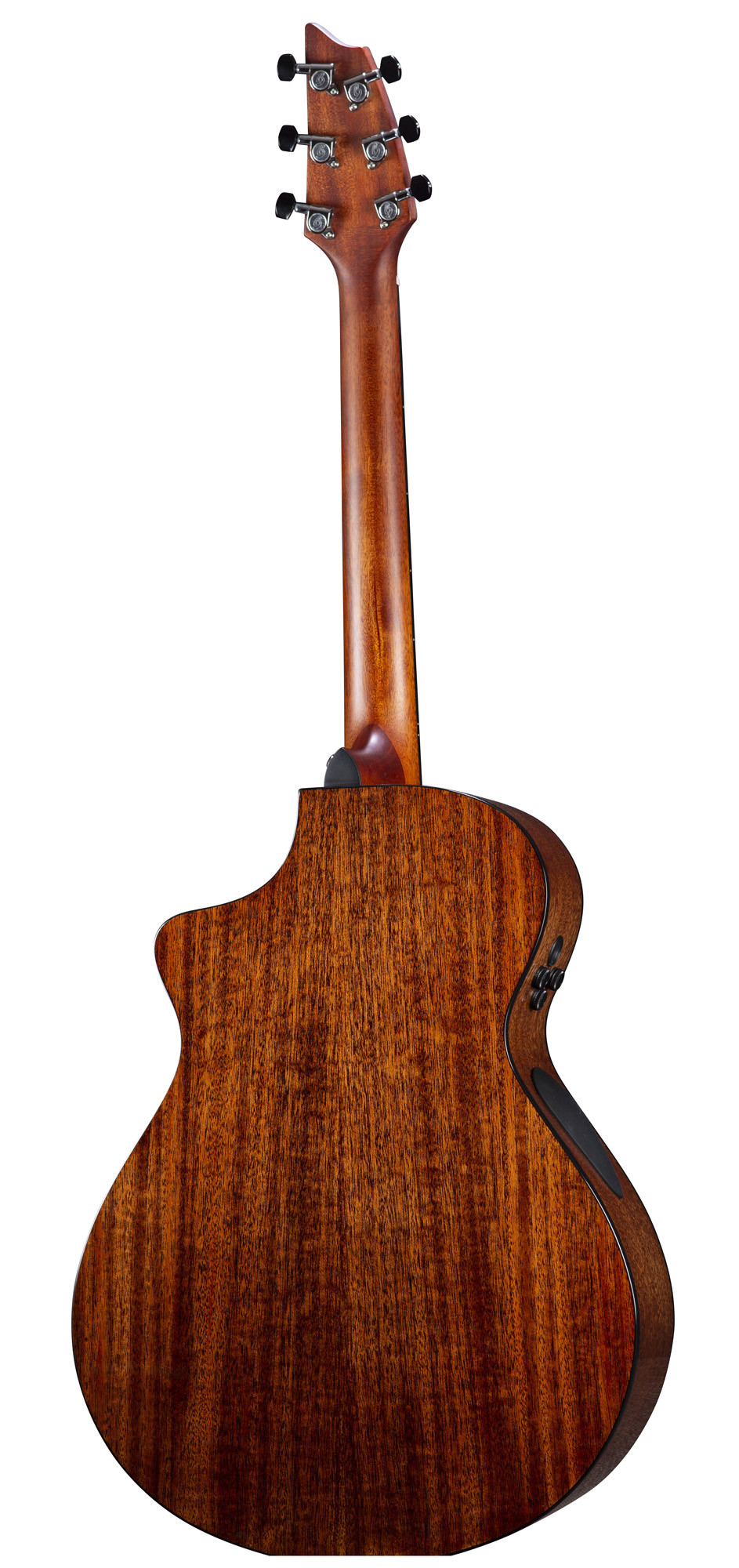 Este modelo cutaway está diseñado con una tapa de cedro rojo macizo y un fondo y aros de caoba maciza, para una construcción cuidada y homogénea. El mástil de caoba, con una cejuela de 43 mm, ofrece un agarre cómodo. El diapasón y el puente en ovangkol, las incrustaciones “offset dots” de latón, el binding negro y las cejas Tusq completan el conjunto. El instrumento está equipado con clavijeros dorados Premium Breedlove, cuerdas D’Addario XT Light, un EQ Fishman Flex Plus-T y se entrega con funda.