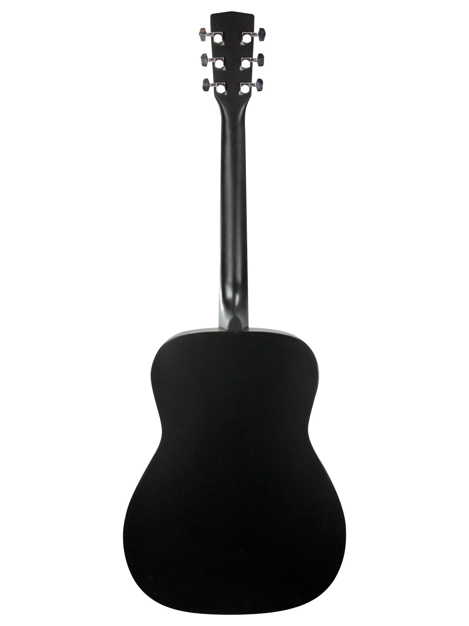 Su tapa de abeto, combinada con el fondo y los aros de caoba, contribuye a una construcción armoniosa. El mástil de caoba, el diapasón y el puente de merbau, así como su acabado negro satinado, completan un conjunto elegante y coherente. Este modelo cuenta con 20 trastes y una cejuela de 43 mm.