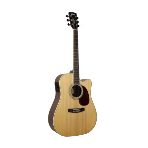 Este modelo combina una tapa de abeto macizo con fondo y aros de caoba, para una construcción pensada para la guitarra acústica de 12 cuerdas. Su mástil de caoba con cejuela de 48 mm, su diapasón de ovangkol y su acabado natural satinado completan el conjunto. Está equipado con un sistema EQ Fishman Presys con pastilla Sonicore, ofreciendo una solución de amplificación integrada adecuada para la sonorización.