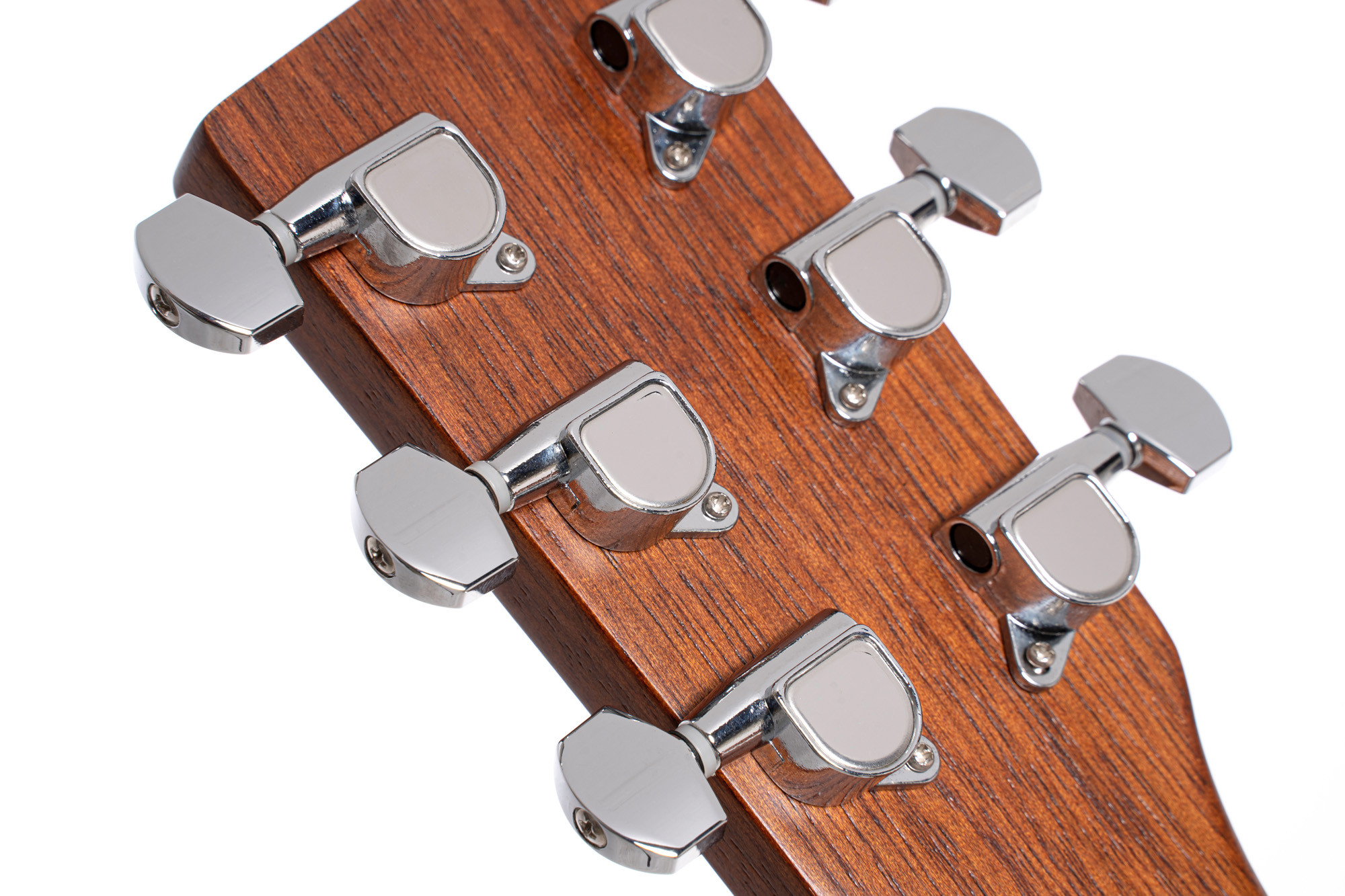 Su tapa de abeto, combinada con el fondo y los aros de caoba, ofrece una construcción cuidada. El diapasón y el puente de merbau, los 19 trastes y el acabado natural de poro abierto completan el conjunto.