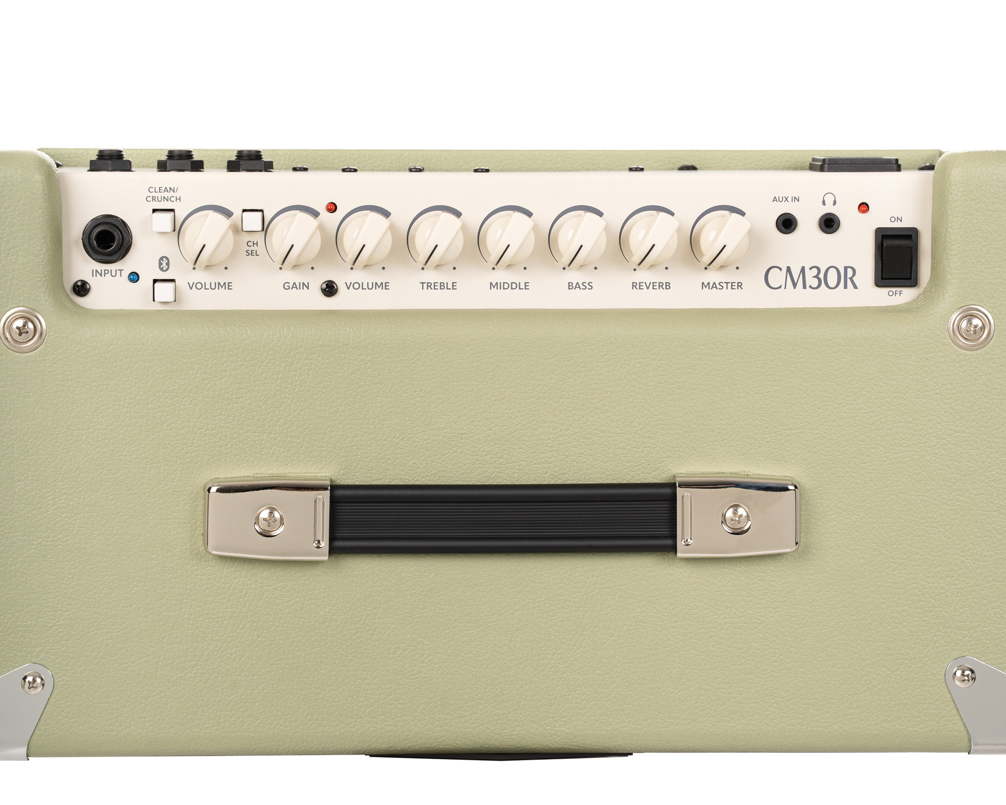 Este amplificador de 30 W con altavoz de 10" está diseñado para ofrecer una solución sencilla y versátil para la práctica y las sesiones en casa. Sus 2 canales permiten variar los ajustes según el sonido deseado, mientras que el ecualizador de 3 bandas y la reverb integrada ayudan a ajustar el resultado sonoro. También dispone de una entrada Bluetooth conmutable, una entrada CD/MP3 mini-jack, una salida de auriculares mini-jack, un loop de efectos y una toma de footswitch. Su formato compacto y su acabado en verde pálido completan el conjunto.