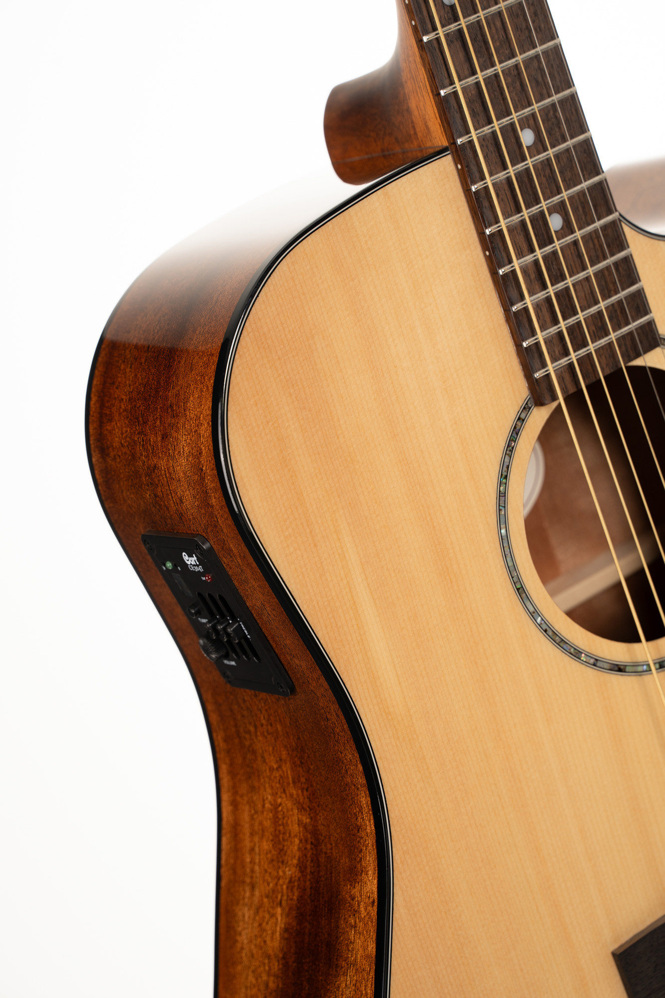 Sus principales ventajas residen en su tapa de abeto macizo, su cuerpo de caoba y su electrónica EQ CE304T. El conjunto ofrece una construcción coherente, completada por afinadores cromados de baño de aceite y un acabado natural brillante.