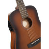 Este modelo Dreadnought 3/4 combina una tapa de abeto macizo con fondo y aros de caoba para una construcción cuidada y un formato compacto. Está equipado con el sistema HyVibe 2, que integra varios efectos, un looper, un afinador y un metrónomo, así como una aplicación móvil para crear bancos de efectos y ajustar la ecualización. El altavoz integrado permite la reproducción de audio Bluetooth y la difusión de los efectos dentro de la caja. Una batería de ion de litio recargable y reemplazable ofrece más de 10 horas de autonomía. Funda incluida. Acabado brown burst de poro abierto.