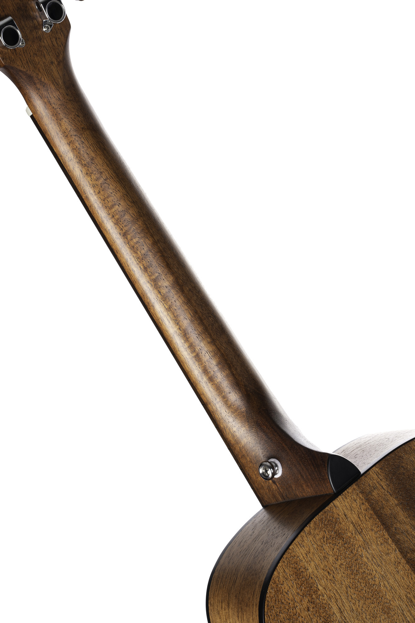Combina una tapa de abeto macizo con fondo y aros de caoba, para una construcción clásica y equilibrada. El mástil de caoba, el diapasón y el puente de merbau, así como los 20 trastes y la cejuela de 43 mm, completan el conjunto. También se incluye una funda para facilitar el transporte y el almacenamiento.