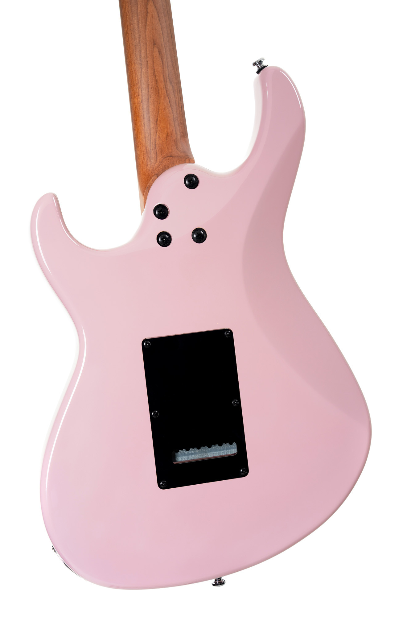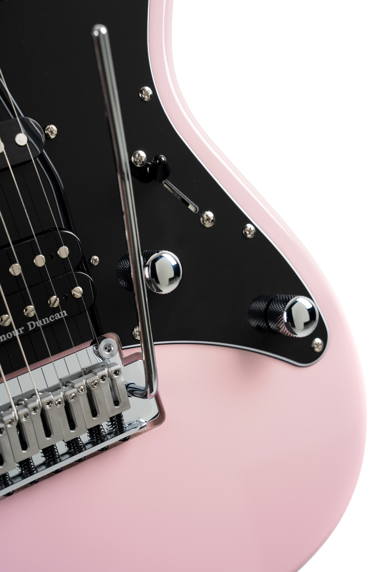 Cuerpo de álamo, mástil y diapasón de arce tostado, configuración HSS con 2 pastillas Voiced Tone VTS-63 y 1 pastilla Seymour Duncan TB4, acabado dusty rose.