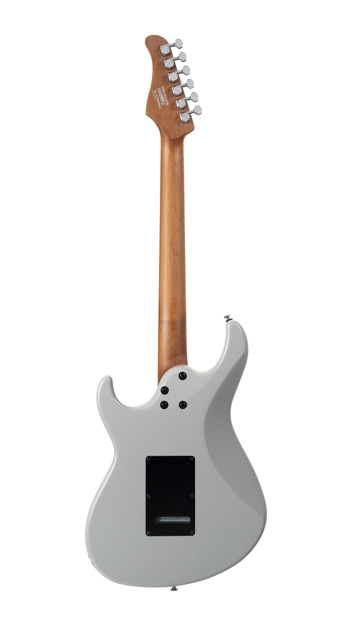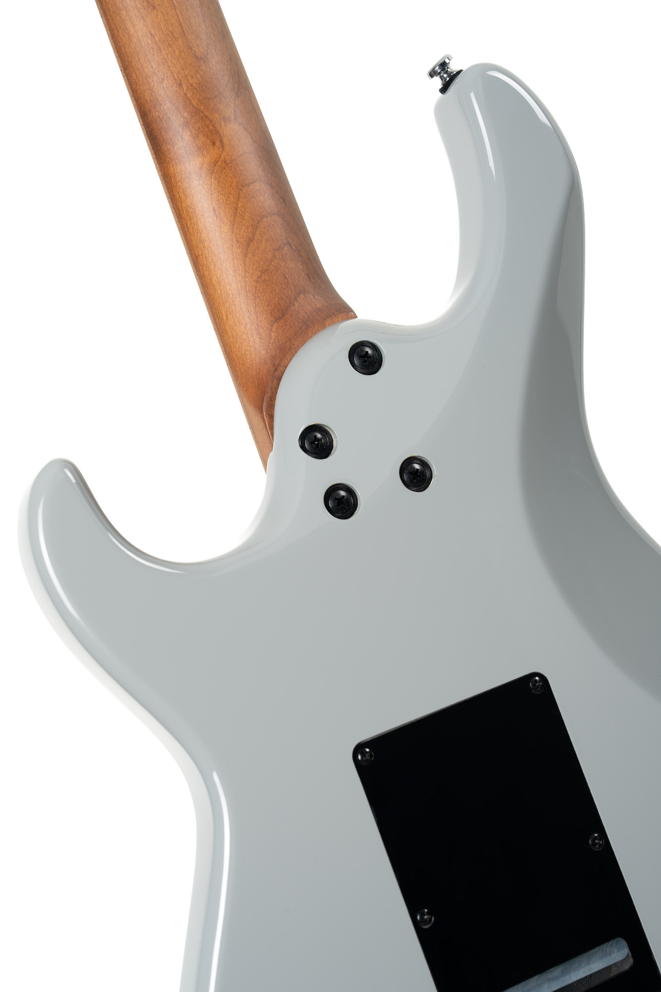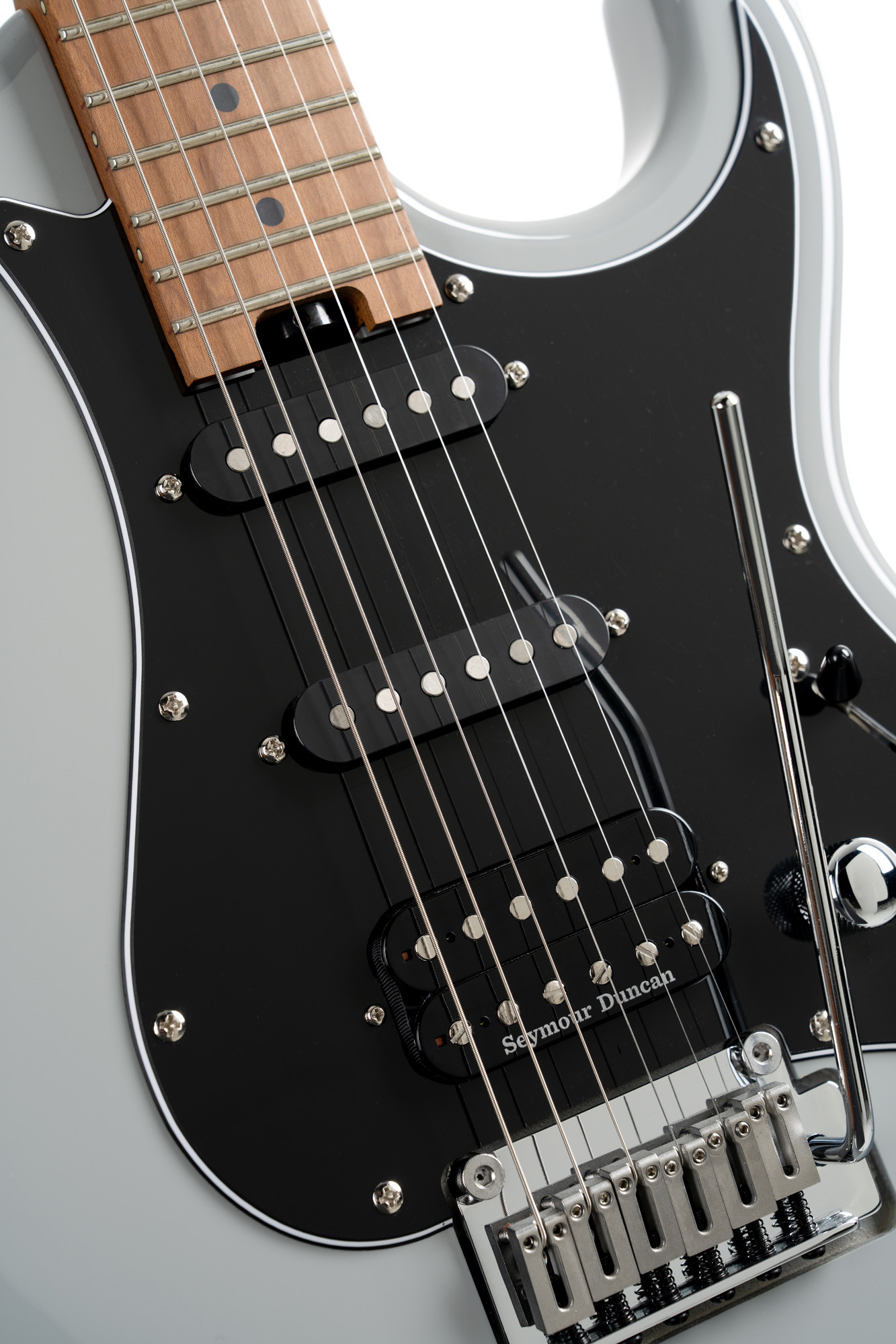 Cuerpo de álamo, mástil y diapasón de arce tostado, configuración de pastillas HSS con 2 pastillas Voiced Tone VTS-63 y 1 pastilla Seymour Duncan TB4, acabado pale graphite.