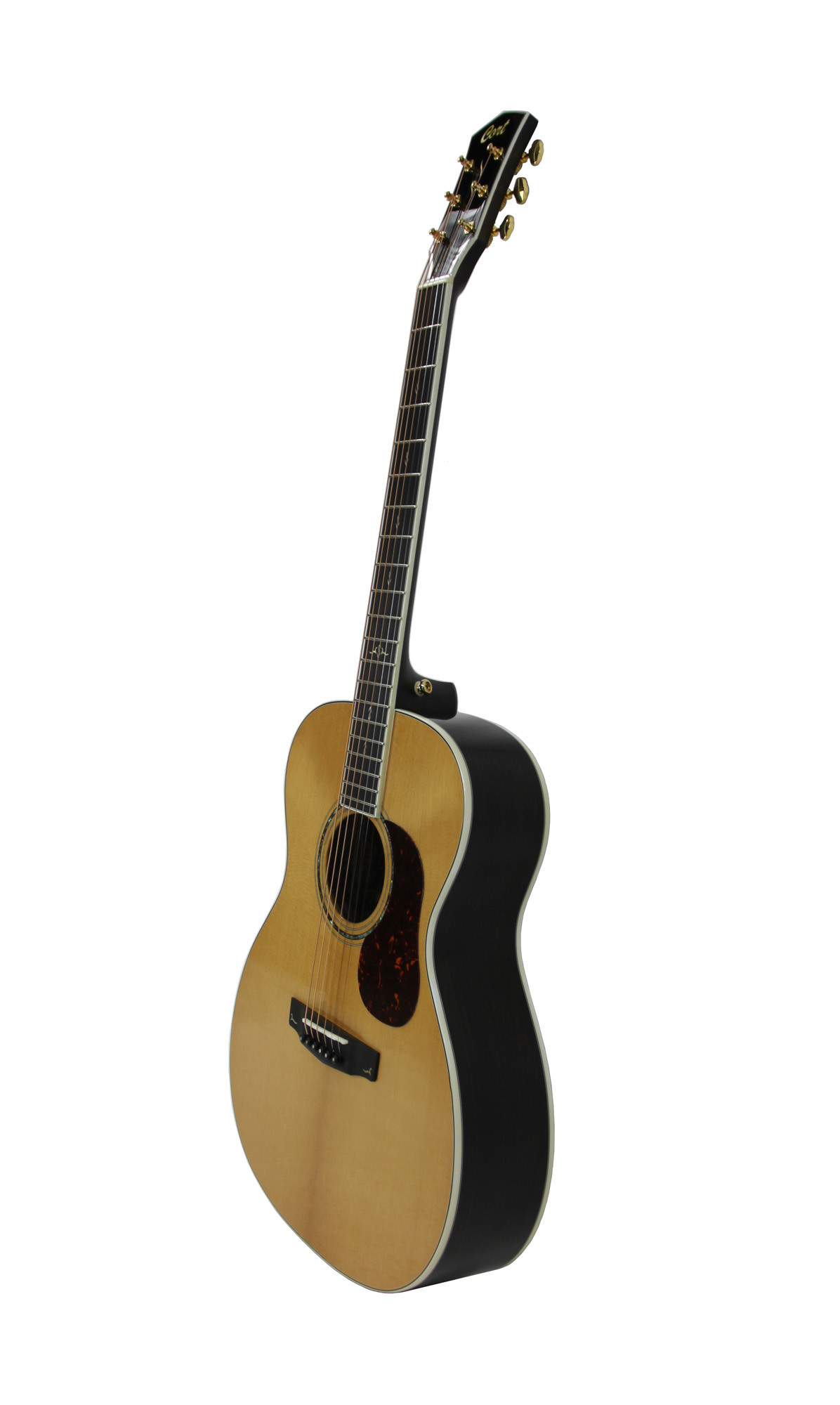 La Guitarra Cort Gold O8 Natural retoma una forma Orchestra Model apreciada por su comodidad de ejecución y su proyección natural. Combina una tapa de abeto Sitka macizo tostado con un fondo y aros de pau ferro macizo, para una construcción cuidada y expresiva. Su acabado natural brillante realza la estética de la madera al tiempo que subraya su carácter premium.