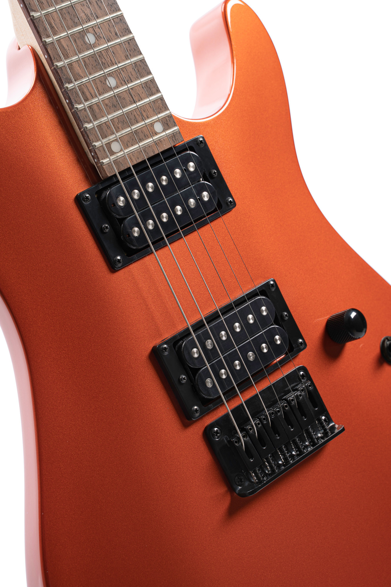 KX100, cuerpo de tilo, mástil atornillado de arce, diapasón de jatoba, equipada con 2 pastillas dobles Powersound, acabado Iron Oxide.