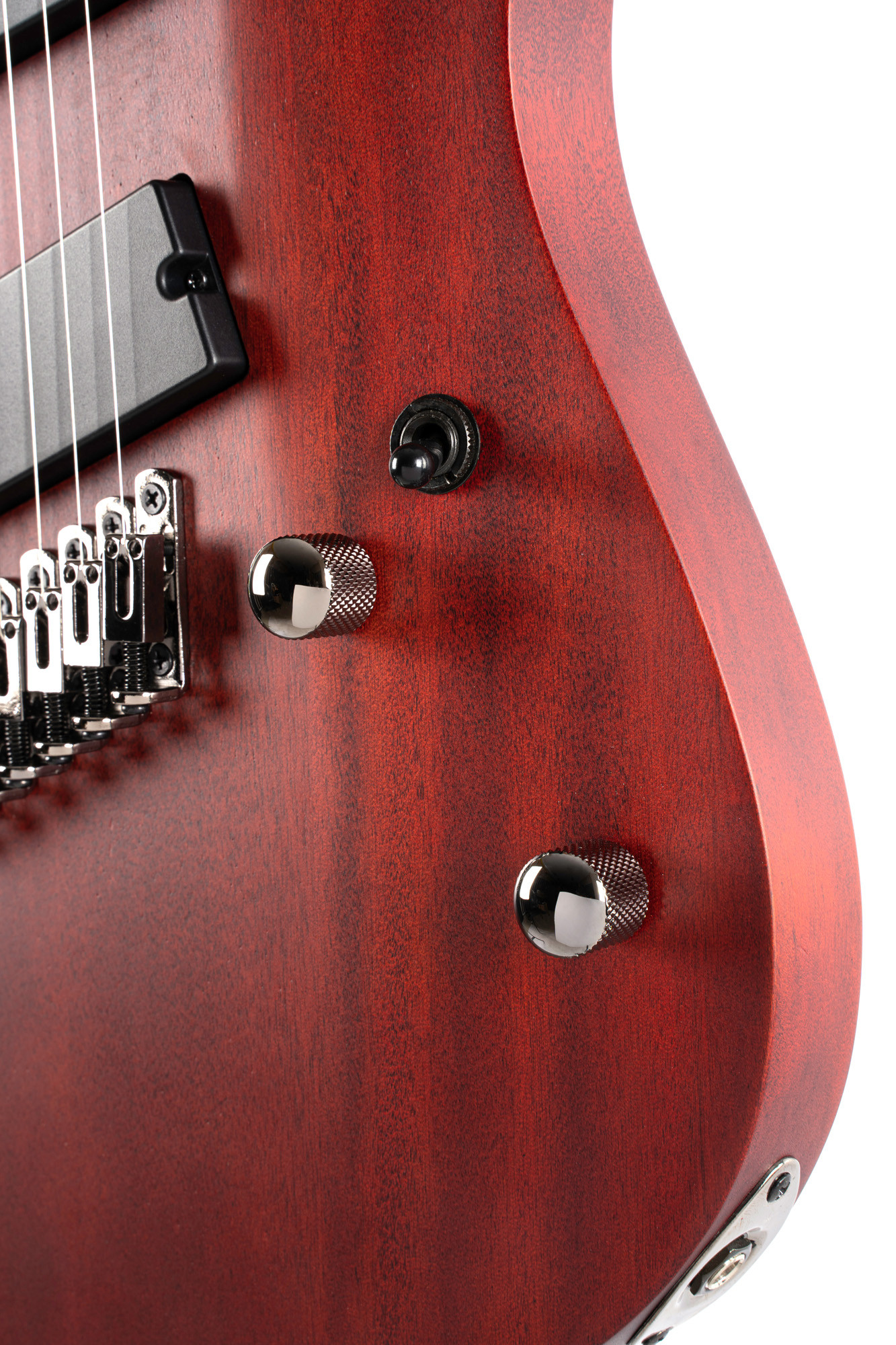 Porque combina una construcción en caoba y arce tostado, 24 trastes en abanico, cuerdas a través del cuerpo y una electrónica sencilla con dos pastillas pasivas PowerBar. Esta configuración ofrece un conjunto coherente para quienes quieren un instrumento bien equipado y adecuado para una amplia variedad de situaciones de interpretación.