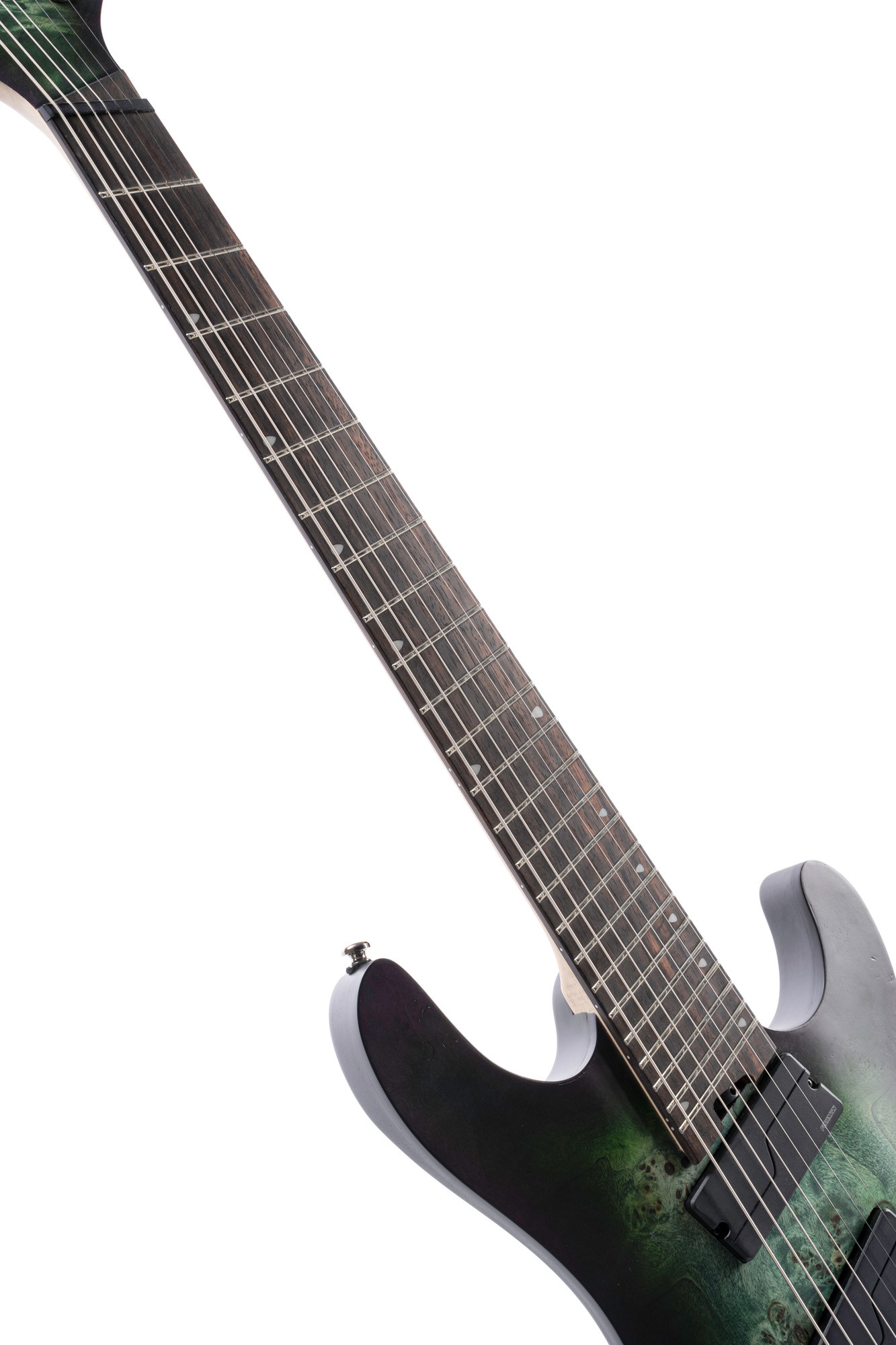 Se distingue por su configuración de 7 cuerdas, sus 24 trastes en abanico, sus pastillas Fishman Fluence Modern y su conjunto de componentes orientados a la precisión y la estabilidad, lo que la convierte en una opción pertinente dentro de esta categoría.