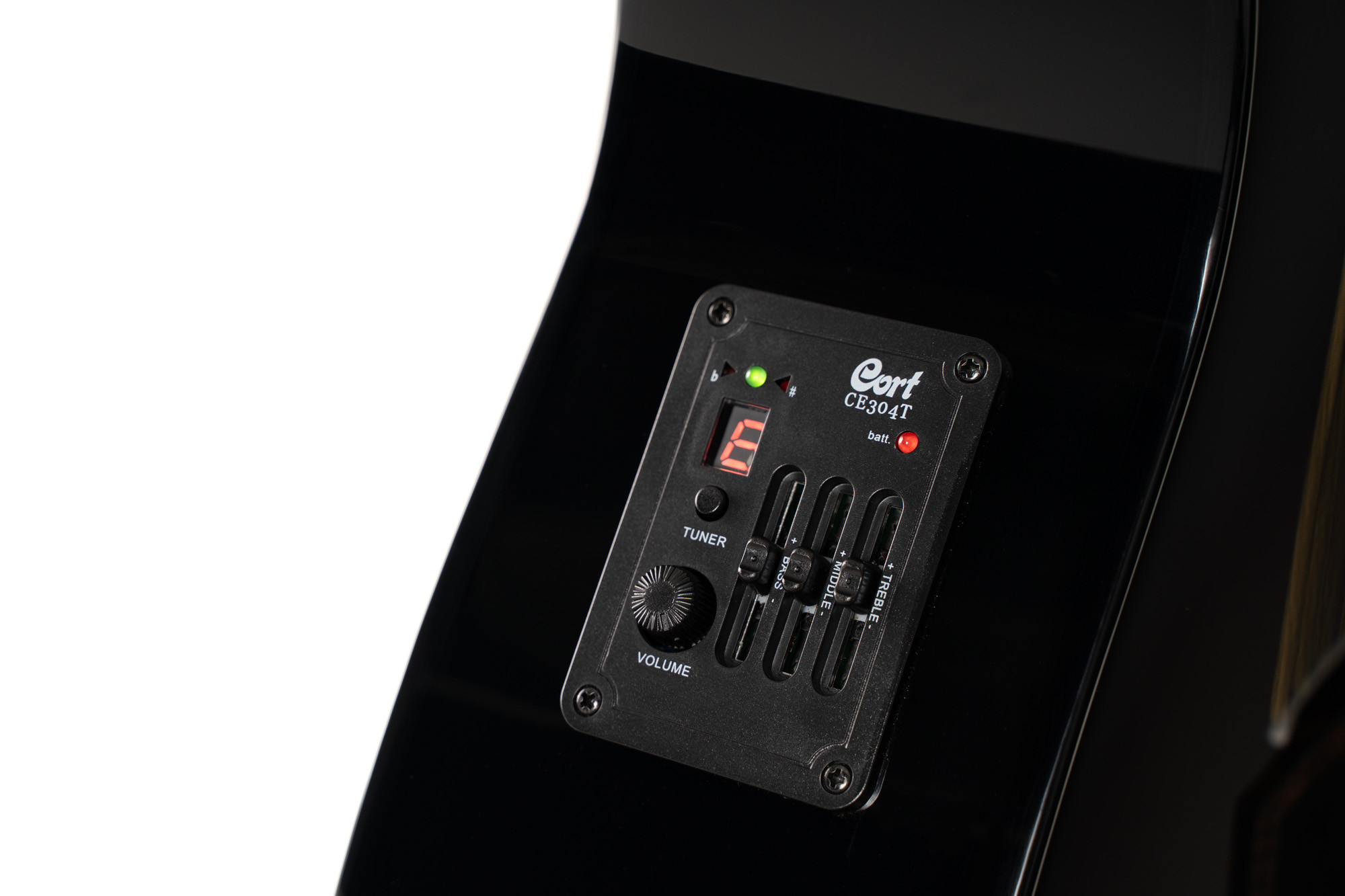 Su tapa de abeto macizo, su fondo y sus aros de caoba, así como su diapasón de laurel, ofrecen una base de fabricación seria. El previo EQ CE304T y las clavijas cromadas de baño de aceite añaden elementos prácticos y fiables.