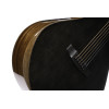 Este modelo se distingue por su forma Modern Concert y su acabado negro brillante translúcido. Combina una tapa de abeto europeo macizo con un fondo y unos aros de caoba maciza, con binding de nogal para una presentación cuidada. El mástil de caoba incorpora incrustaciones de nogal y bloques custom incrustados, mientras que el diapasón y el puente de ébano aportan un acabado de gama alta.