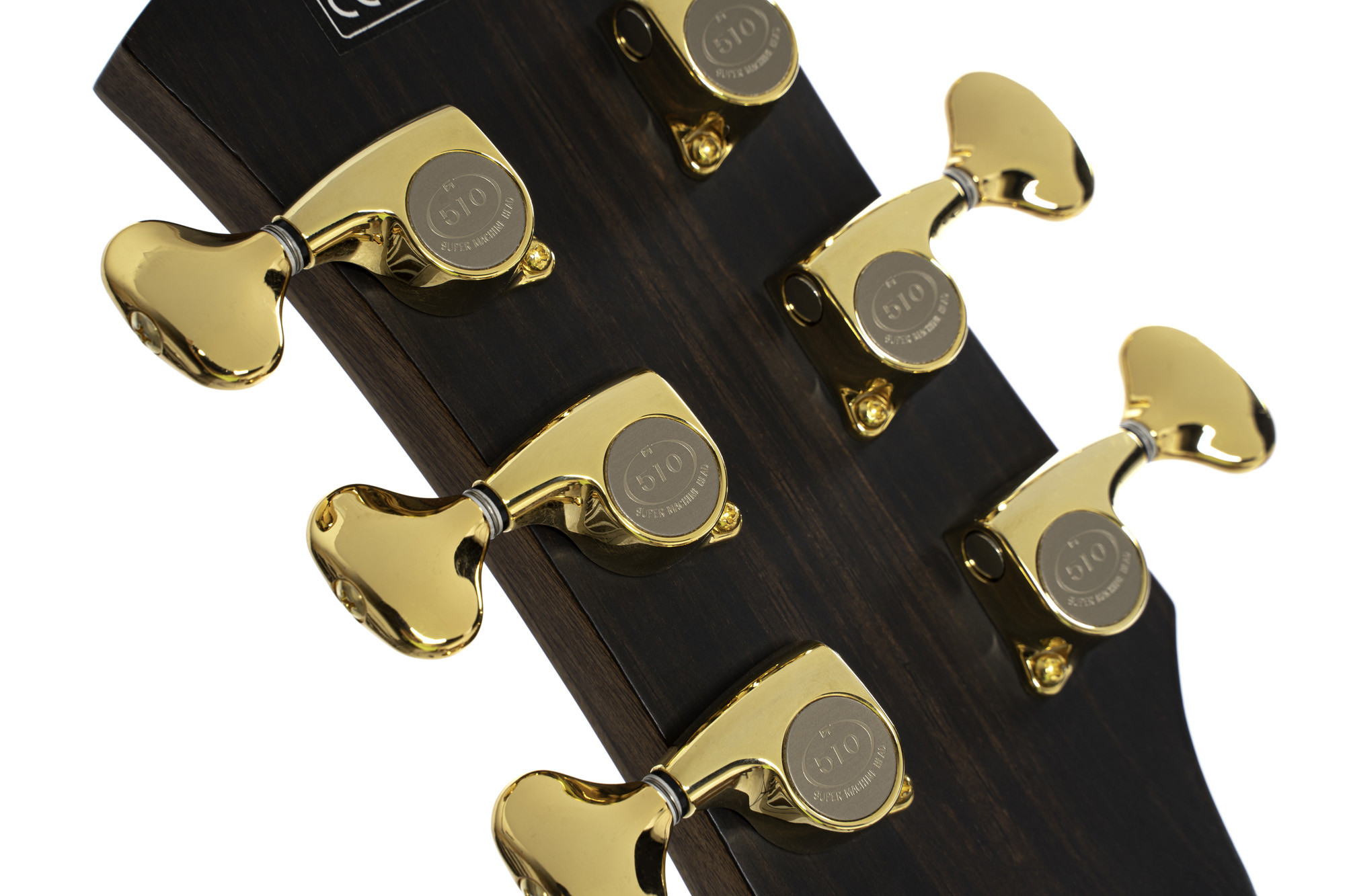 Su construcción se basa en maderas macizas de primera calidad, con una tapa de abeto europeo macizo, un fondo y unos aros de caoba maciza, así como un diapasón y un puente de ébano. Los clavijeros Gotoh, la electrónica Fishman Matrix Infinity y el estuche deluxe refuerzan aún más su atractivo.