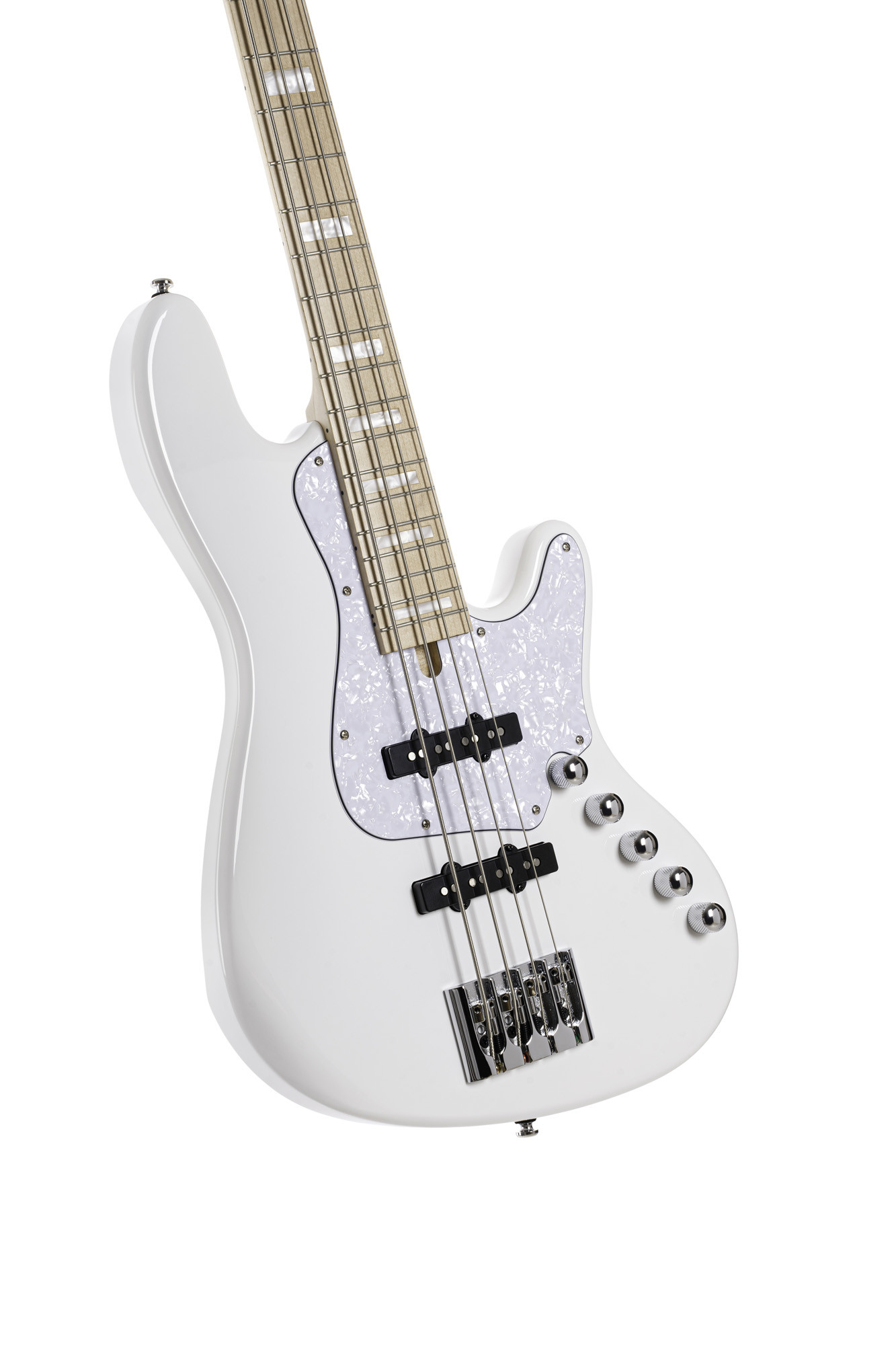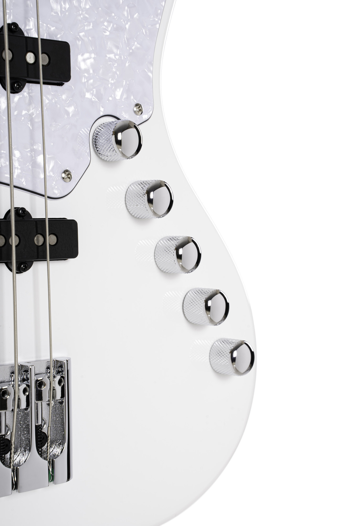 Este bajo de 4 cuerdas combina un cuerpo de aliso con un mástil y un diapasón de arce para ofrecer una base sonora equilibrada y precisa. Su escala de 34" garantiza una sensación familiar, mientras que sus dos pastillas tipo Jazz y su previo Bartolini permiten una amplia paleta de sonidos adaptados a diferentes estilos de interpretación. Su acabado blanco brillante le da un aspecto sobrio y elegante.