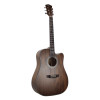 La PURE-DCMF es una guitarra acústica con formato Dreadnought cutaway, diseñada para ofrecer un equilibrio interesante entre comodidad de ejecución y proyección sonora. Su tapa de caoba maciza, junto con el fondo y los aros de caoba maciza, contribuye a un sonido cálido y natural, mientras que el acabado satinado realza su aspecto sobrio y elegante.
