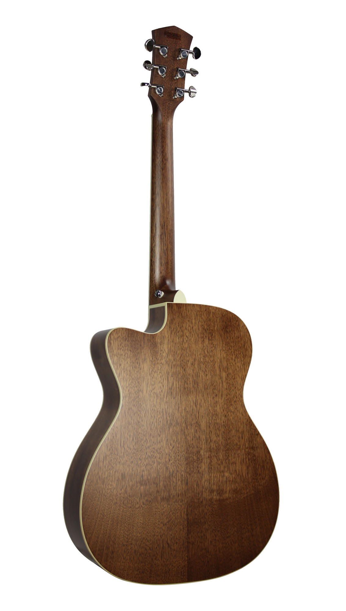 La PURE-OC combina una forma OM cutaway con maderas cuidadosamente seleccionadas para ofrecer un instrumento a la vez cómodo, equilibrado y fiable. Su tapa de abeto Sitka macizo, su fondo y aros de caoba maciza, así como su mástil de caoba, contribuyen a una sonoridad natural y expresiva. El diapasón y el puente de ovangkol, los 20 trastes, la escala de 25,5" y la cejuela de 44,5 mm completan un diseño pensado para una buena tocabilidad.