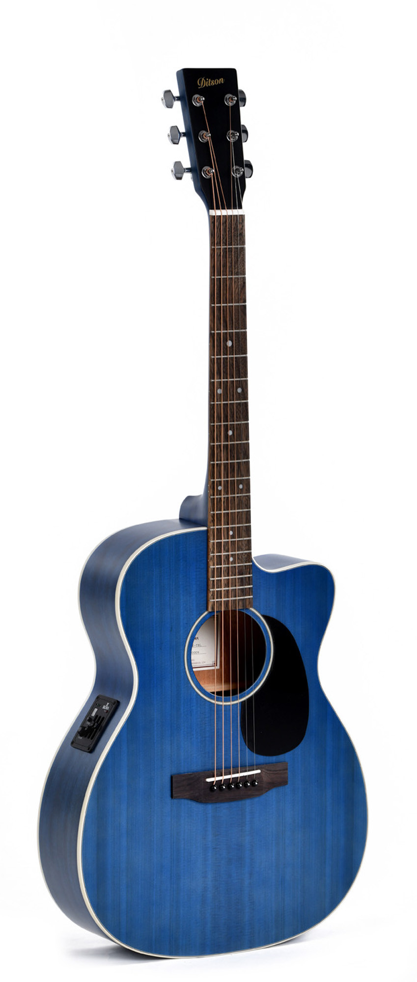 Este modelo presenta una forma 000 cutaway pensada para ofrecer una comodidad de interpretación apreciable y un acceso más fácil a los trastes superiores. Su tapa de abeto Sitka se combina con un fondo y aros de caoba, así como con un mástil de caoba, para una construcción clásica y coherente. Está equipado con cejuela de 43 mm, cejuelas de hueso, diapasón de laurel, clavijero cromado de engranajes sellados, cuerdas D'Addario EXP16 y un sistema EQ Sigma SE-PT. El conjunto se ofrece con un acabado azul satinado.