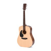 Este modelo para zurdos con formato dreadnought combina una tapa de abeto Sitka con fondo y aros de caoba para una construcción clásica y equilibrada. El mástil de caoba, el diapasón de laurel y la cejuela de 43 mm contribuyen a un manejo cómodo. Las cejuelas de hueso, los afinadores cromados en baño de aceite y las cuerdas D'Addario EXP16 completan el conjunto. El acabado natural satinado realza el aspecto sobrio y auténtico del instrumento.