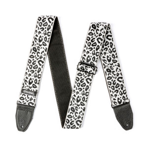 Correa jacquard modelo CATACOMB con extremos de cuero, de 5 cm de ancho, en color negro y gris.